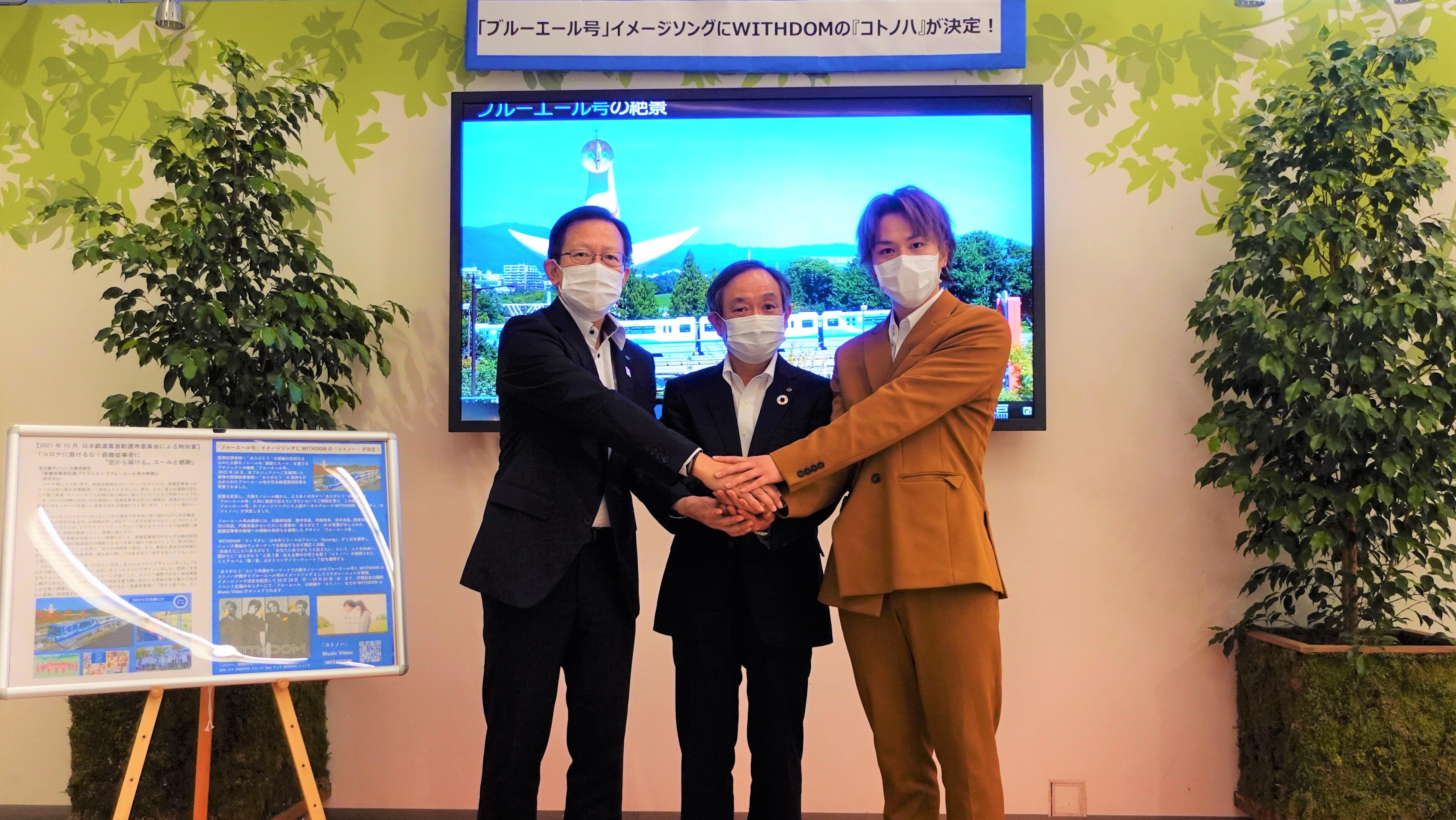 2021/10/18 19:00先日お伝えしたとおり、医療従事者応援プロジェクト「ブルーエール号」が、2021年10月国土交通省から「第20回日本鉄道賞特別賞」を頂くことになりました。この受賞を記念して、より多くの方々へ“ありがとう”の気持ちを「ブルーエール号」と共に音楽でも伝えたいと考え、医療従事者への“ありがとう”をまとった「ブルーエール号」と共通のキーワードで繋がるイメージソングを探していたところ、「出会えたことにありがとう」「あなたにありがとうと伝えたい」と“ありがとう”の大切さを歌うWITHDOMの「コトノハ」に出会いました。そして、この度、WITHDOMの所属事務所である株式会社ロブ様のご協力を得て、「コトノハ」を「ブルーエール号」のイメージソングに決定いたしました。これからも、“ありがとう”の気持ちを「コトノハ」の音楽と共に伝えてまいります。そこで、2021年10月18日(月)~10月31日(日)まで万博記念公園駅イベント広場のモニターに「ブルーエール号」の映像とWITHDOMの「コトノハ」のミュージックビデオを放映いたしますので、是非、ご覧ください。○WITHDOMとはWITHDOMは、作詞作曲を手がけるリーダーのSMOOTH(スムース)、舞台役者としても活躍しているROY(ロイ)、YouTube総再生回数3,200万回以上のチャンネルを持つRyo(リョウ)、介護資格の免許を持ち大学空手日本一にも輝いたSHVNYA(シュンヤ)で構成された4人組ボーカルコーラスグループです。京都市の観光おもてなし大使としても活躍されています。(敬称略)○「コトノハ」とはWITHDOM の「コトノハ」は2019年4月にリリースされオリコンデイリー7位を記録したミニアルバム「華ノ音」に収録されている壮大なバラード曲です。今でも人気のこの曲は、「あなたに出会えたことにありがとう」、「あなたにありがとうと伝えたい」という“ありがとう”と思う事・伝える事の大切さを歌う曲です。ミュージックビデオはこちらWITHDOM「コトノハ」 もっと見る