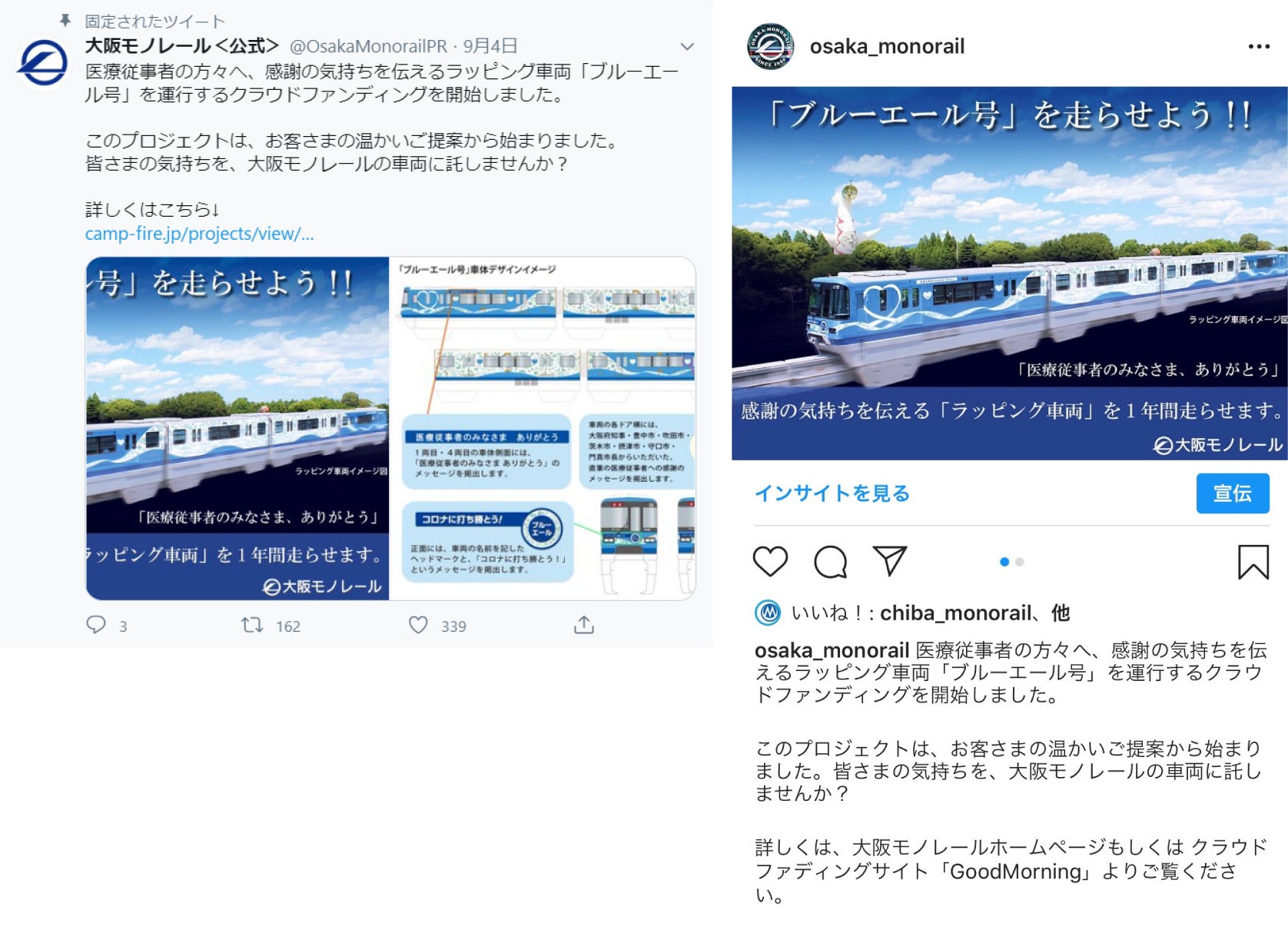また、大阪モノレール公式Twitter・Instagramにて、プロジェクトの進捗状況等を随時投稿してまいります。