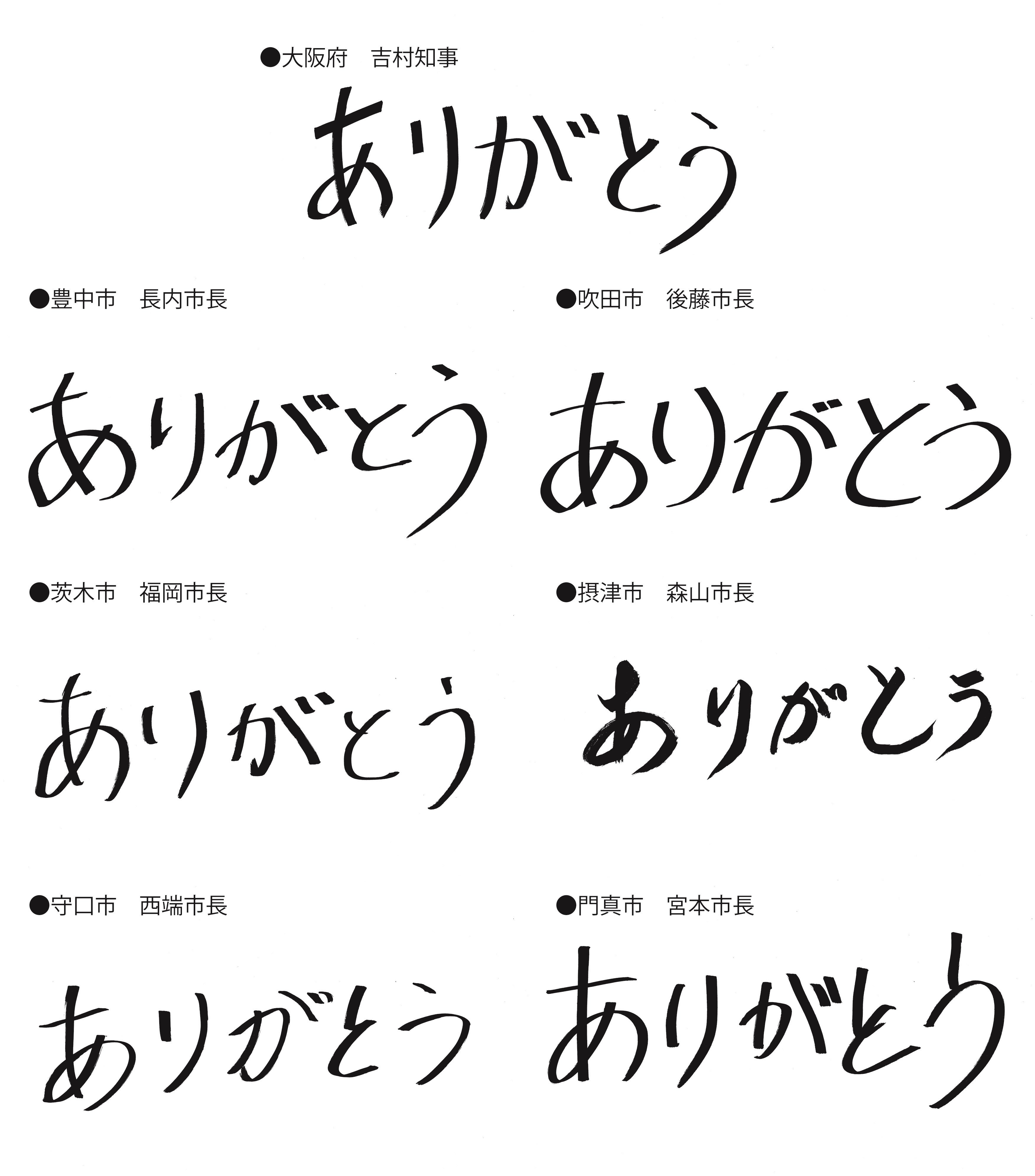 本プロジェクトへご賛同いただいた大阪府知事と豊中市長、吹田市長、茨木市長、摂津市長、守口市長、門真市長より、沿線地域を代表し、医療従事者の方々へ感謝を込めた「ありがとう」の直筆メッセージをいただきました!