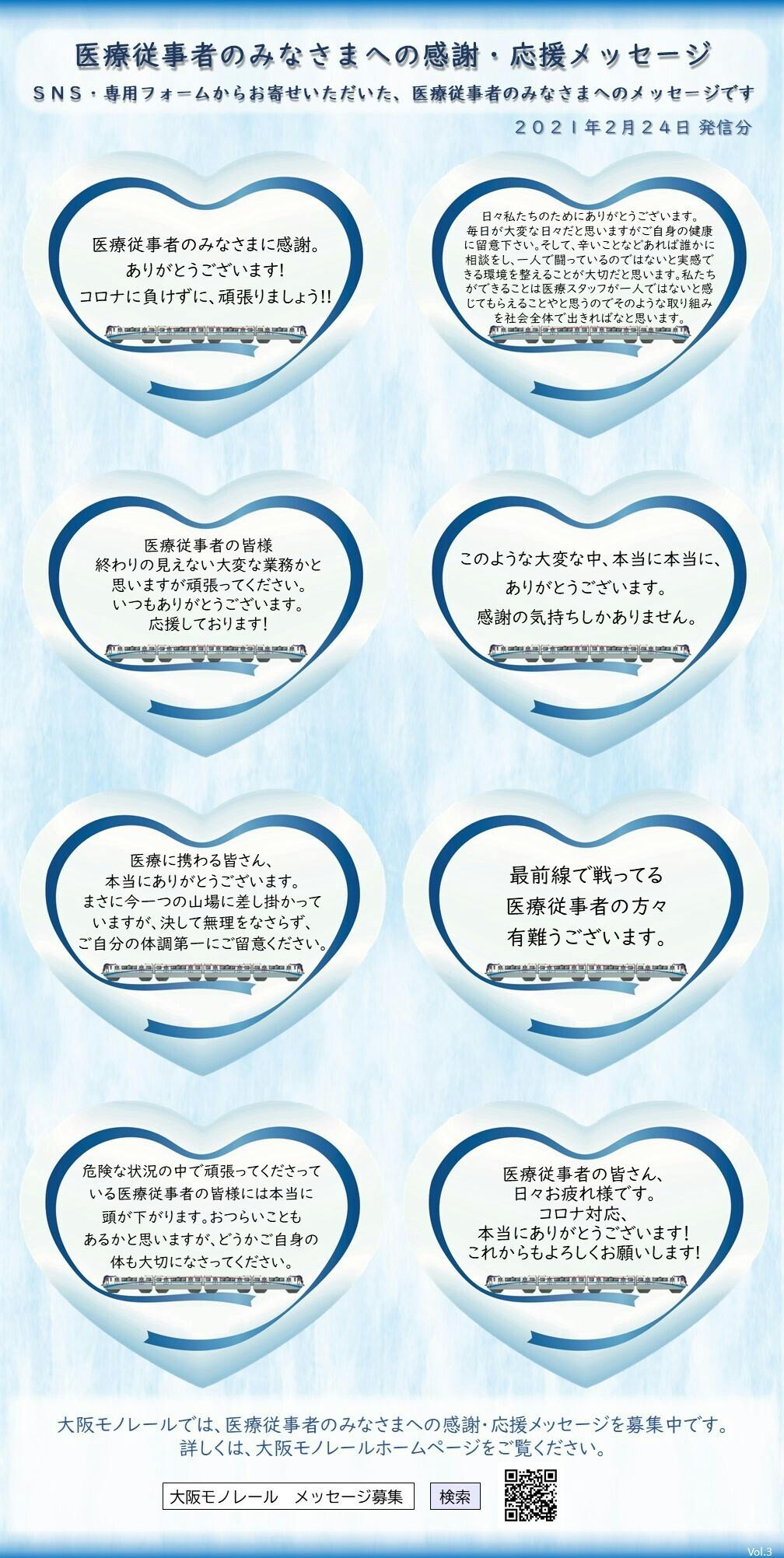 大阪モノレールでは、2020年12月15日から2021年3月21日まで、医療従事者の方々への感謝や応援メッセージを募集しております。今回は、これまでにみなさまからお寄せいただいた感謝・応援メッセージの一部をご紹介します。