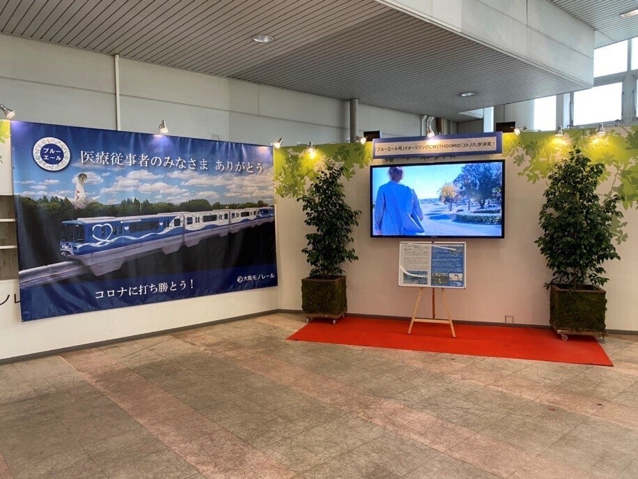 そこで、2021年10月18日(月)~10月31日(日)まで万博記念公園駅イベント広場のモニターに「ブルーエール号」の映像とWITHDOMの「コトノハ」のミュージックビデオを放映いたしますので、是非、ご覧ください。