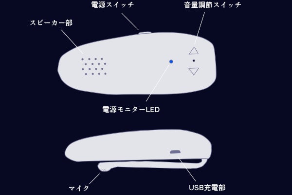 小型スピーカーユニットは小型スピーカー、アンプ、バッテリー、電源回路、電源スイッチ、ボリュームスイッチを有し、小型マイクユニットは小型マイク、マイクアンプを有するものとします。