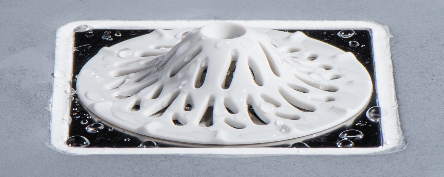 髪の毛やゴミは山型デザインの麓(ふもと)から蓄積していくため、水の流れをブロックせず、ゴミが取れすぎて水が流れないという状況も防止できます。
