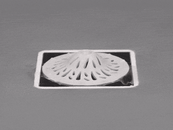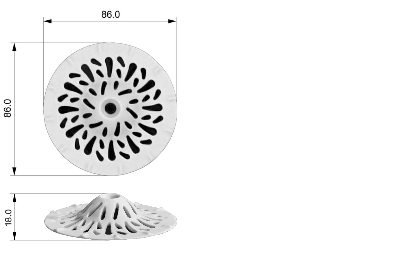 マウンテンピーク(山頂)型のデザインにより、らせん状に水流を誘導することで、効率的に髪の毛やゴミを集めながらも水の流れを邪魔しないため詰まりも防止します。