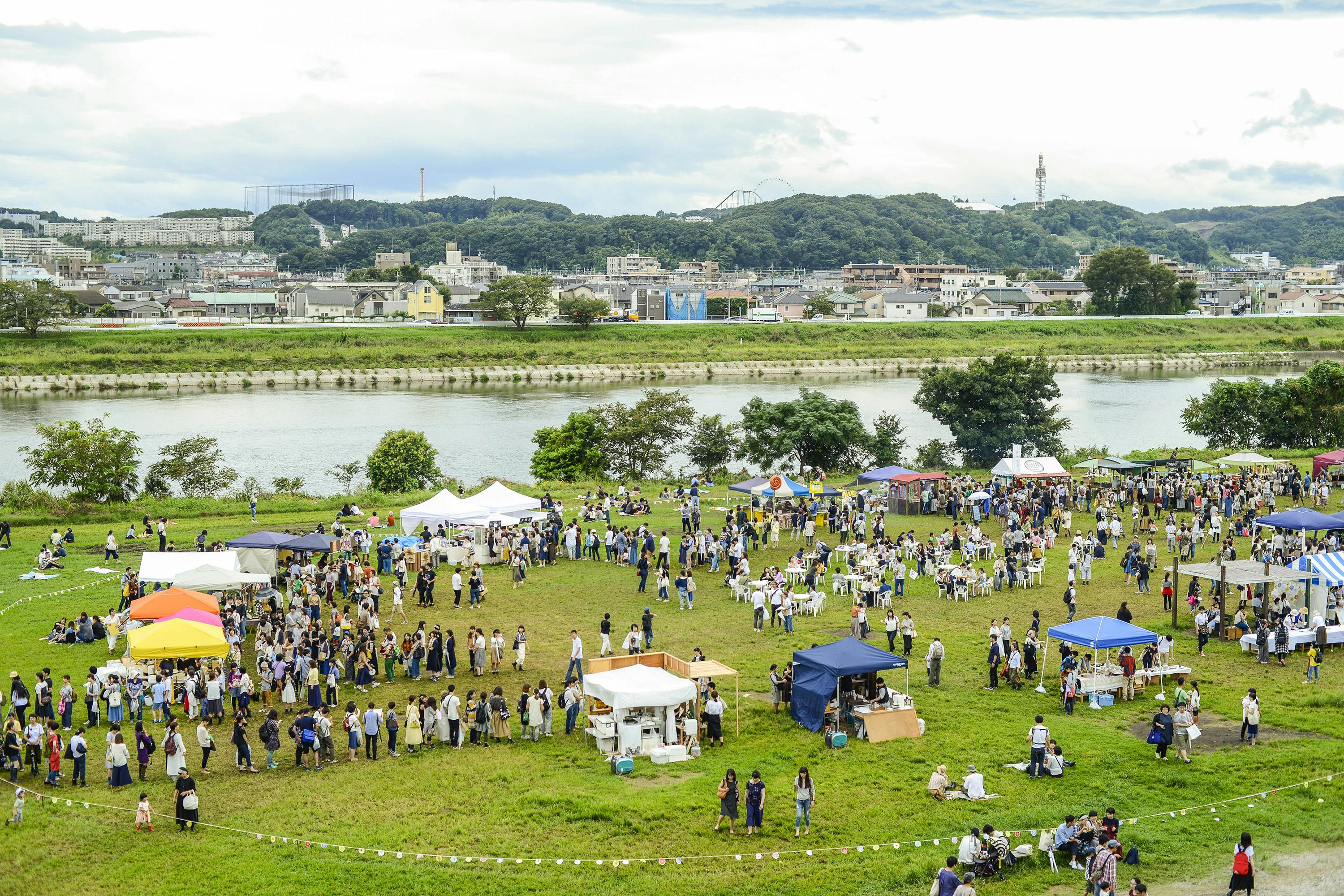 天候に悩まされることも多いけれど、やはり思い出すのは、広い多摩川の河川敷にひしめくテント。そんな風景をYUNOSUKEさんにお願いしました。