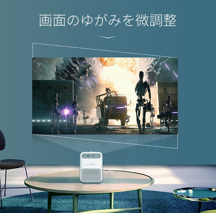 プロジェクターって壁に映す角度によって微妙に斜めになってしまったりして、なんかちょっと嫌な感じ... そんな歪みを±40°調整して映画館のスクリーンのように修正する機能がついています。