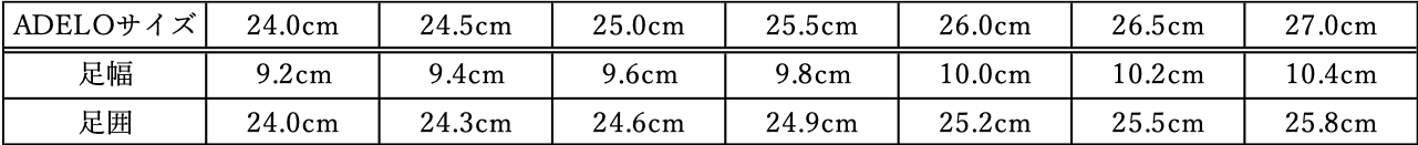 一般的に革靴はスニーカーに比べて、小さめのサイズがジャストサイズで履いていただけるように作られています。さらに、ADELOはヒールアップ仕様の為サイズが若干大きく感じられる場合がございます。
