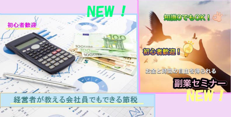 新着情報追加しました。現在募集中のセミナー【経営者が教える会社員でもできる節税術】他