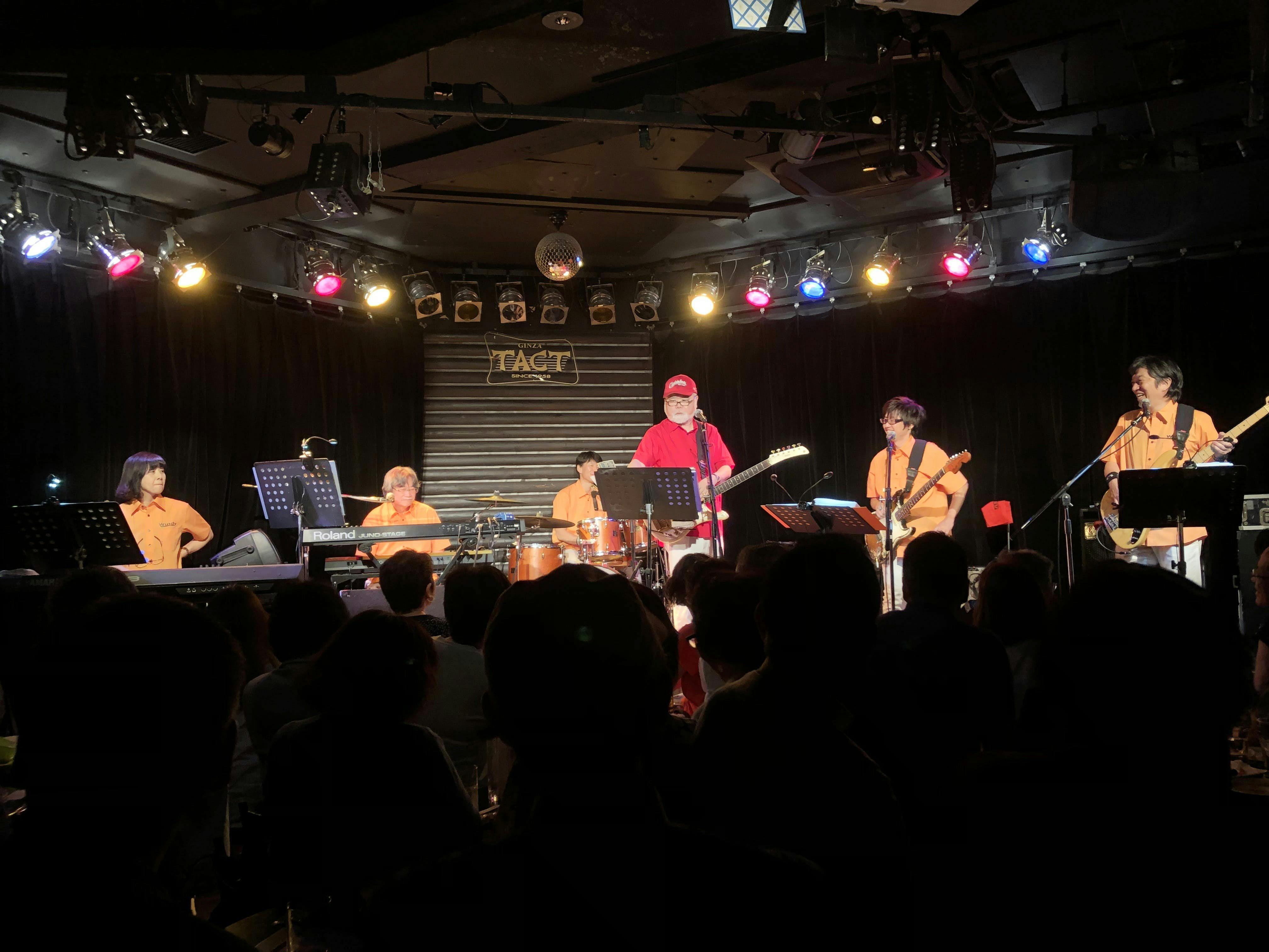 店内では、ゆっくりおくつろぎいただきながら、楽しんでいただけるよう飲食も提供しております。お客様の笑顔溢れるステージが繰り広げられるよう、平均年齢60歳のバンドは毎晩頑張っております。