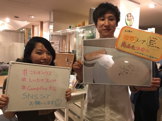 〇〇スープは、ことばハウスの看板メニューとして人気があり、しいたけが苦手な方にもおいしく飲んでいただけたことができ、別府市長にもお墨付きを頂くことができました!