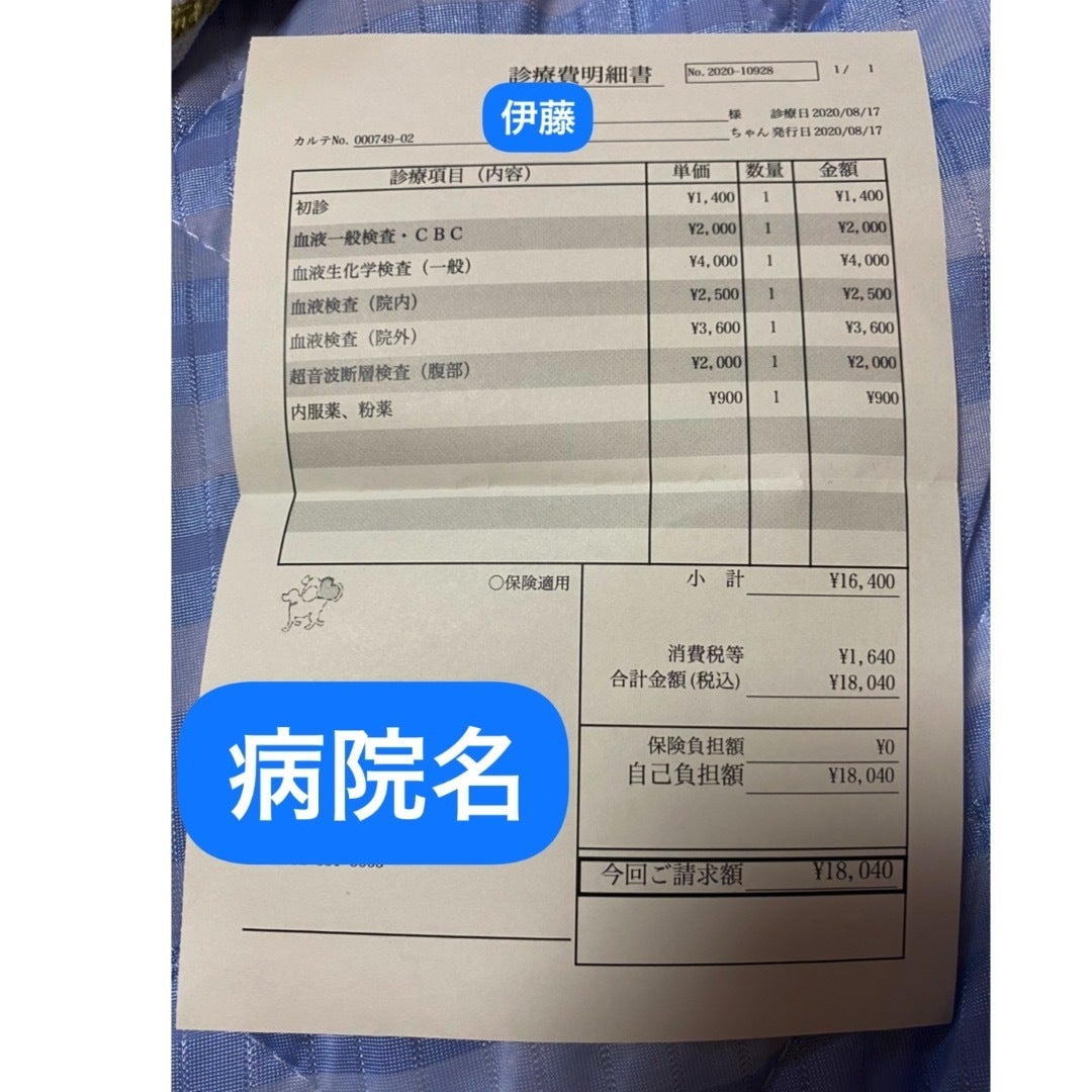 遺伝子検査結果を待っていたら、死んでしまう可能性があるとのこと。認可されていない高額な治療費なので、こちらに委ねられるが、薬の処方してもらう。同時にビオフェルミンなどを与えるといいとのこと。