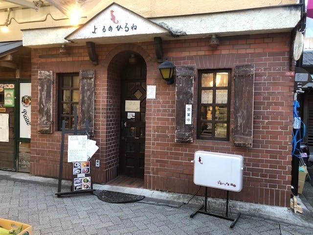JR中央線阿佐ヶ谷駅北口ロータリー左手不動産店角入り20M。青果店向かいに位置する「よるのひるね(夜の午睡)」という飲食店です。ブックカフェ的夜の飲食店です。