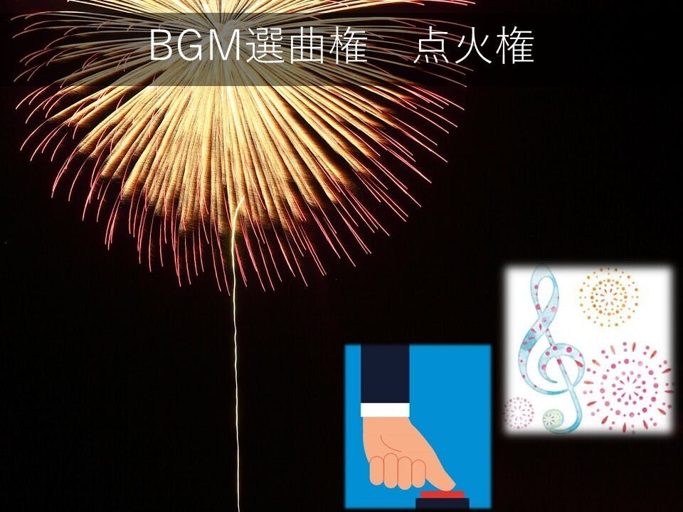 打ち上げ当日最初の花火を「点火機」を使って打ち上げて頂くコース、または打ち上げ当日、会場に流れるBGMをお好きな楽曲に選んで頂けるコースのいずれかを選んで頂けます。