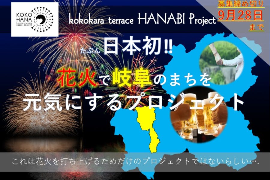集まった支援金で岐阜県「本巣・北方エリア」の夜空に花火の打ち上げをします。