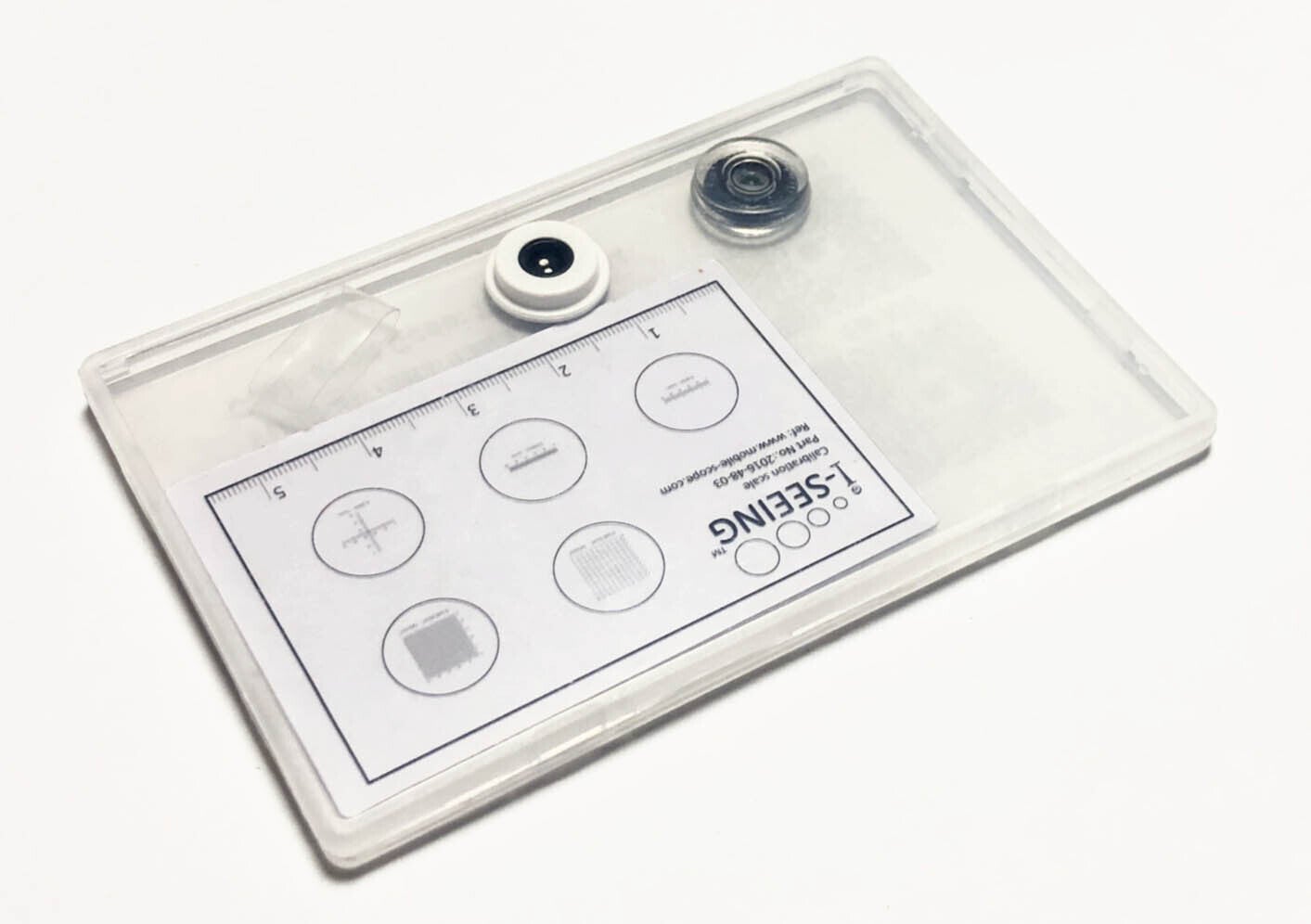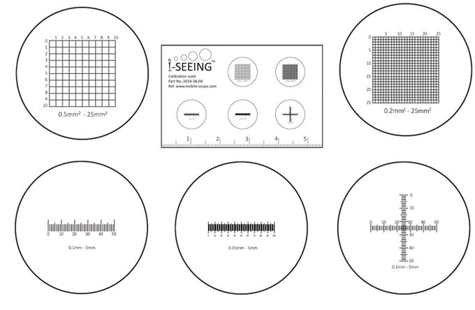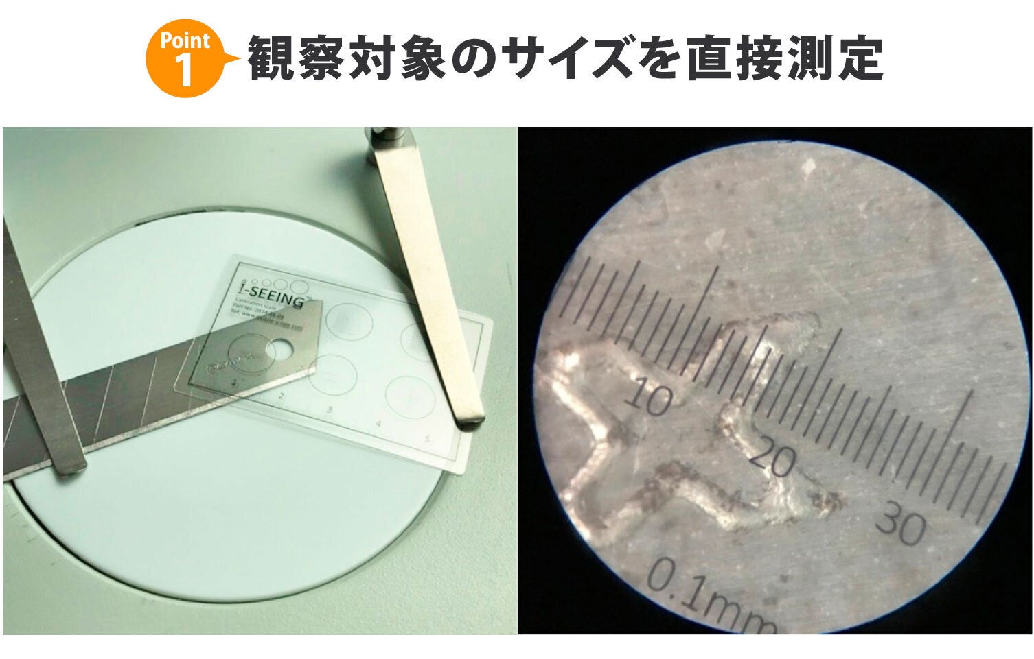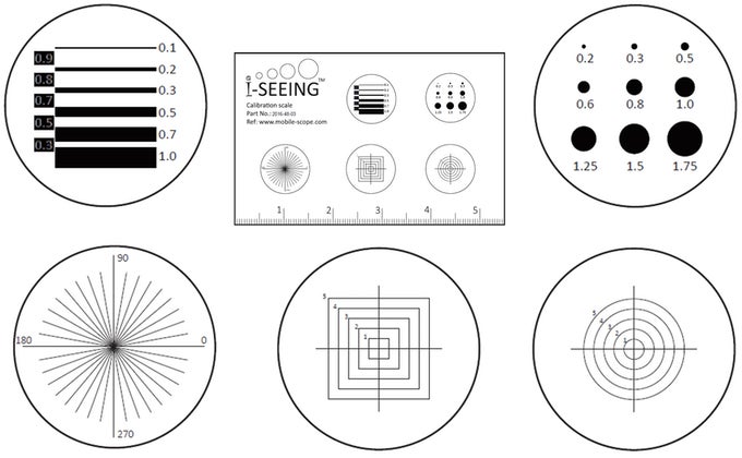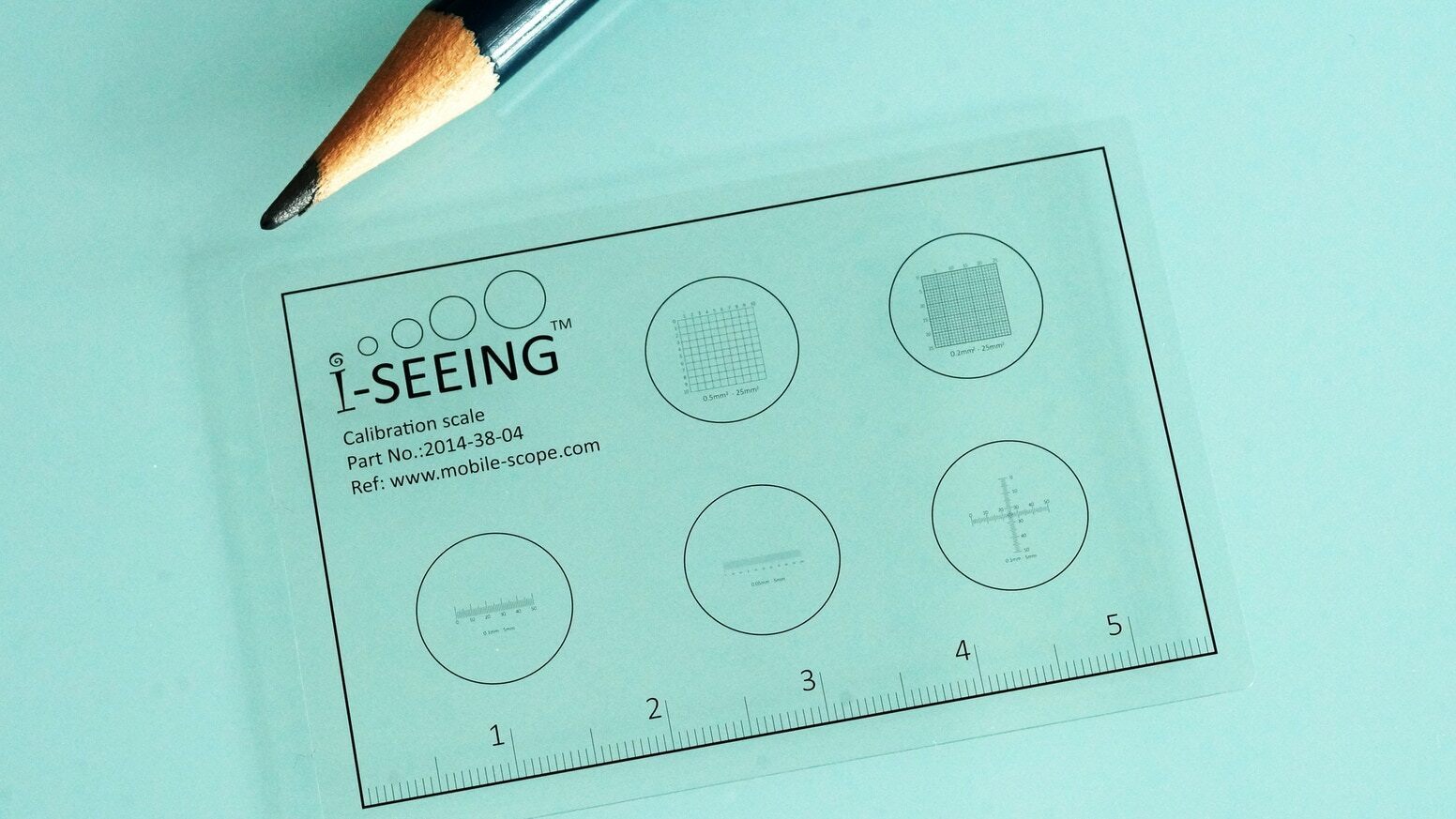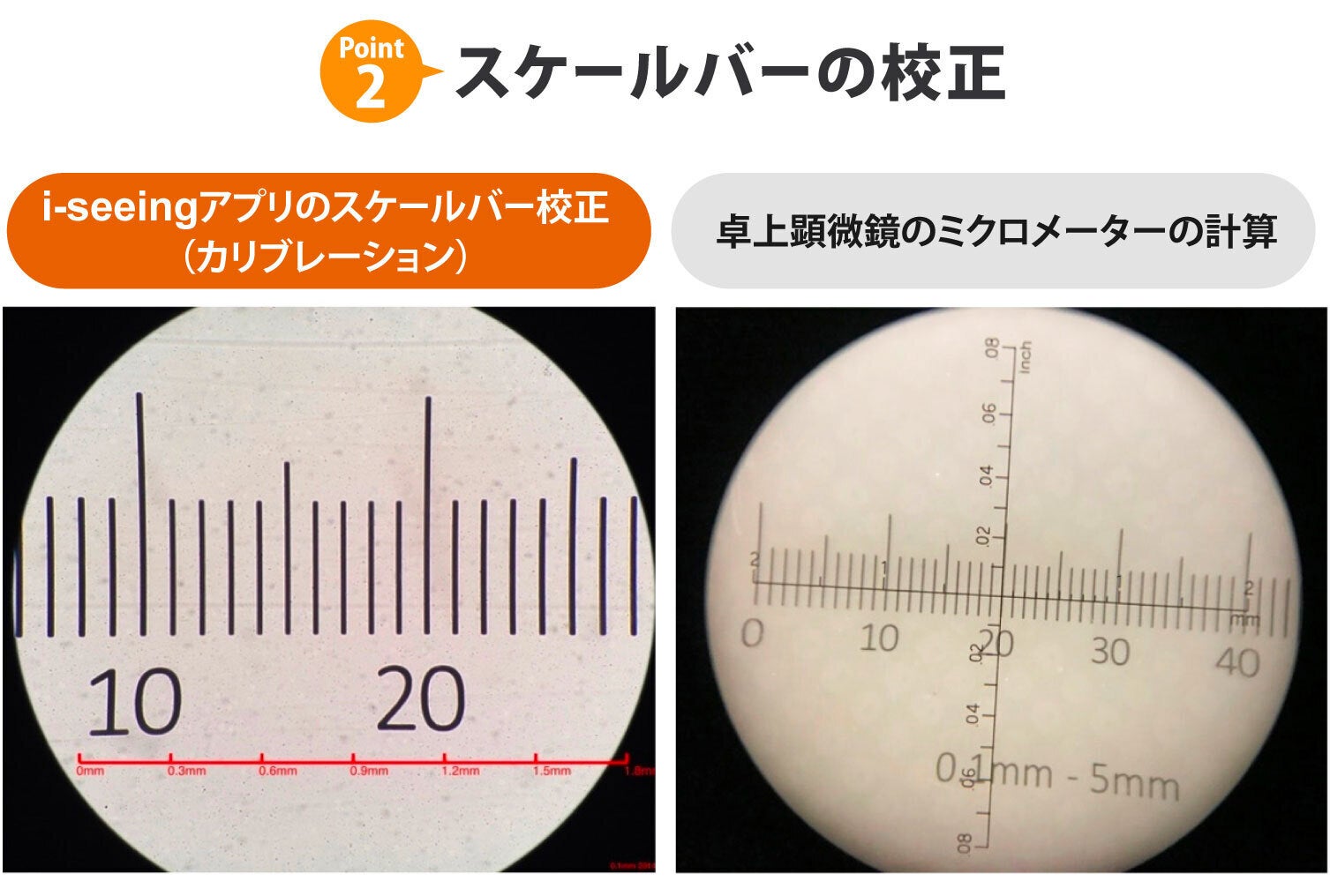 観察対象の正確なサイズを測定するため、専用アプリ「i-Seeing」や顕微鏡のスケールバーを校正するのに使用できます。
