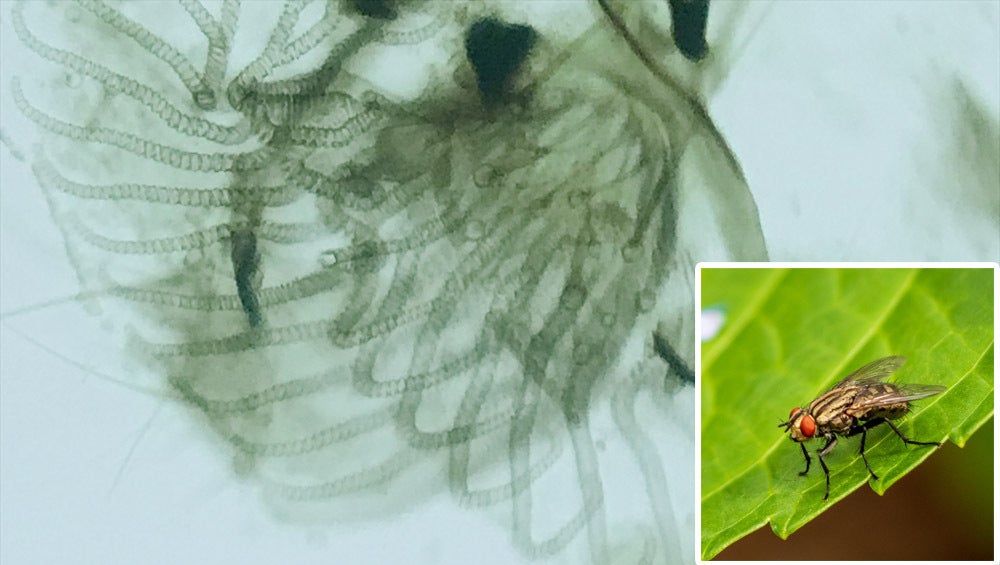 「イエバエの口のらせん構造をはっきりと観察できる」という事自体がmicroHunter X100 の解像度の高さを証明しています。