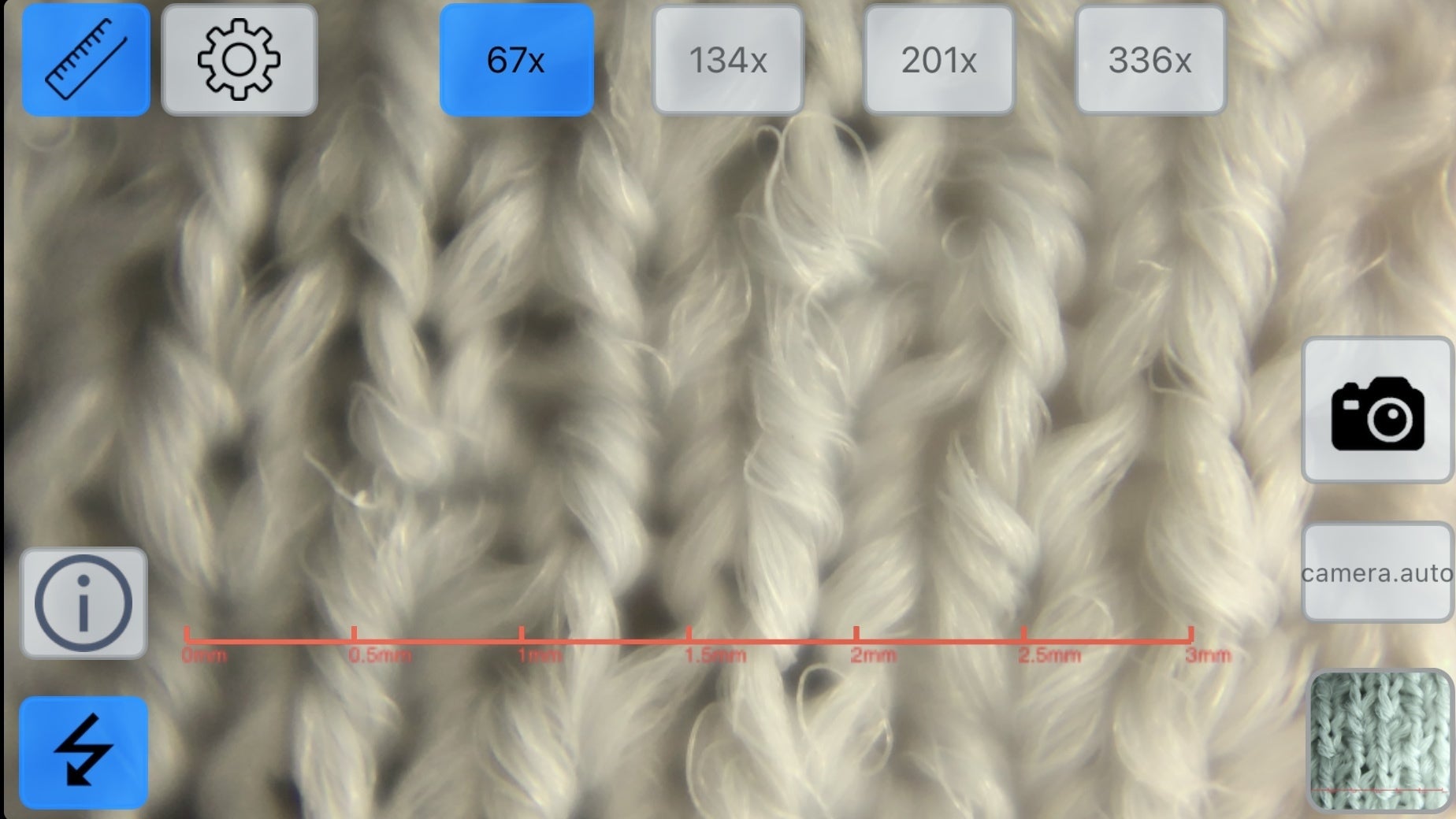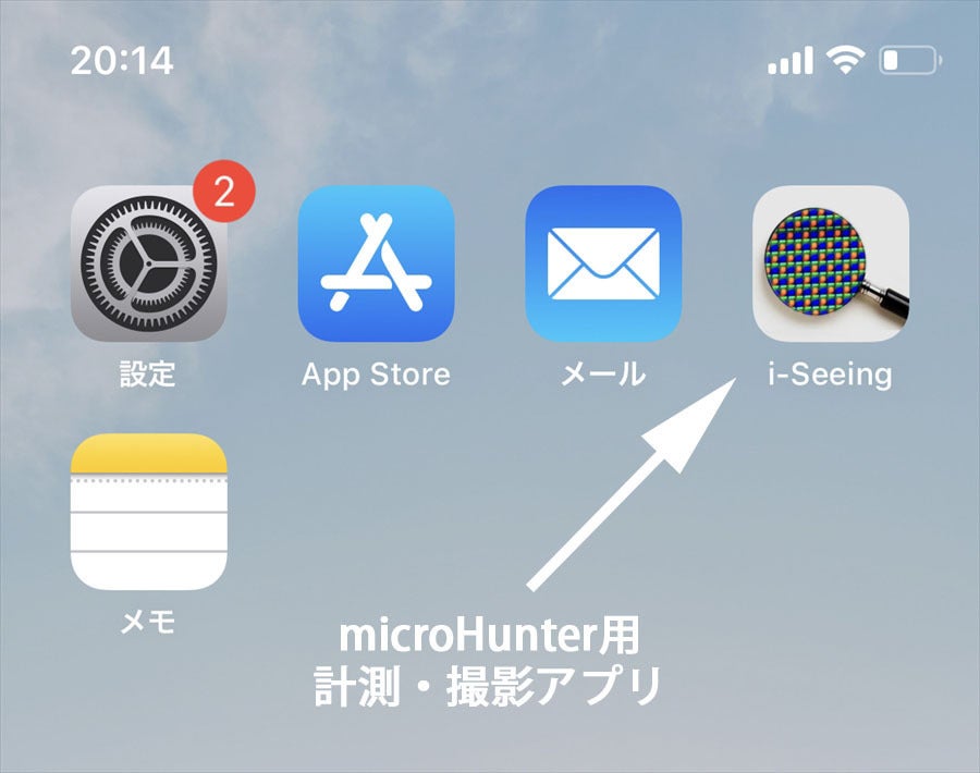 ミクロハンターレンズは、撮影中にもライトをONにできるカメラアプリが入っていればどんなスマホでも使用可能です。ただし、目的によっては記録として顕微鏡写真にスケールバー表示させたい場合があります。 専用アプリの「i-Seeing」は、そのような専門家のニーズを満たす顕微鏡写真を撮影できるように設計されています。