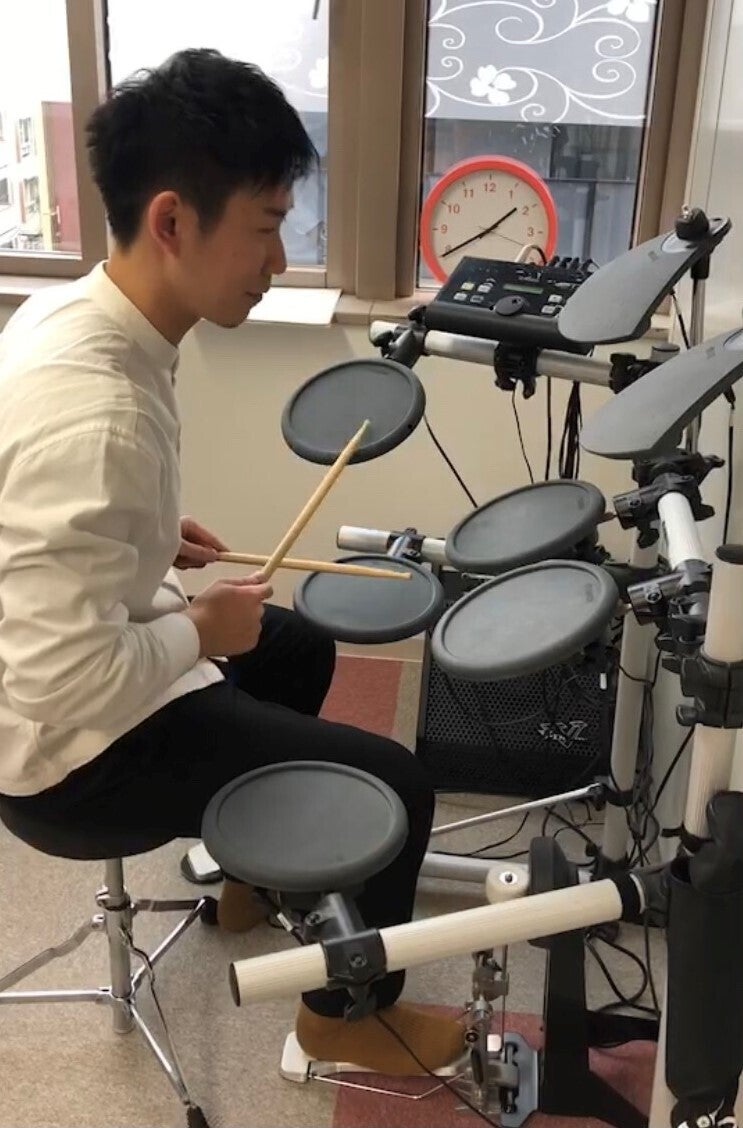 最近では、こどもたちと一緒にできるよう、昼休みの時間にかわるがわるスタッフがドラムを練習しています。