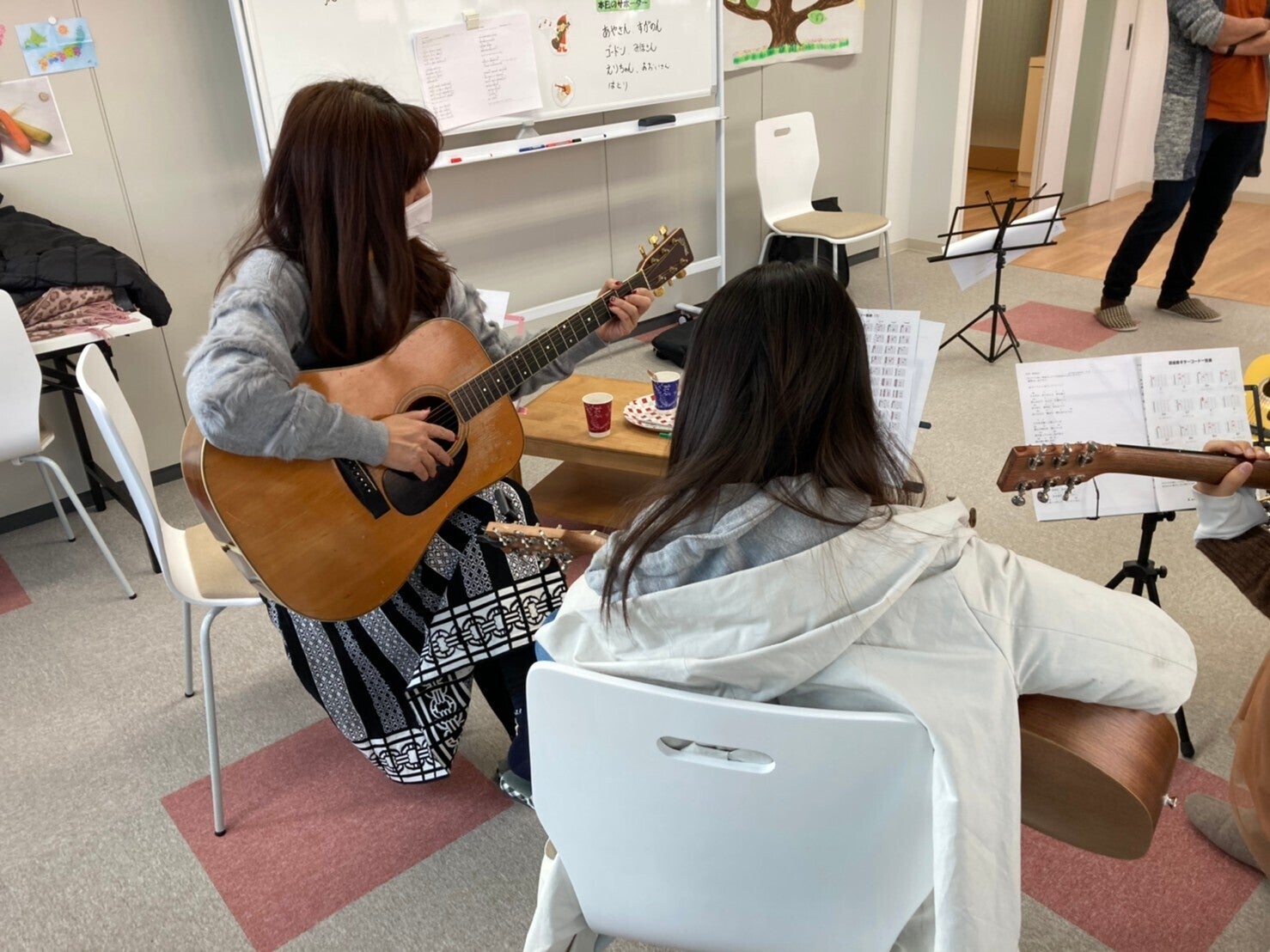 新年あけましておめでとうございます。今日は20201年初の『KMC (こもれびミュージッククラブ)』の日でした。KMCは、こもれびで月に1回開催しているギター教室です。「テディーズギター教室」さんのご厚意のもと、無料で子どもたちにギターを教えていただいています。音楽の楽しさを知ったり、人とコミュニケーションをとったり、音楽祭やCD作成のレコーディングを体験したりと、さまざまな経験につながっています。プロの方に教えていただくことで、子どもたちがホンモノの音を聴いたり、ホンモノの雰囲気を感じたりすることができ、子どもたちの良い刺激となっていると実感しています。というのも、参加してくれる子どもたちはみんな笑顔で、かつ真剣にギターを学び、大人が驚くスピードで上達をしてくれているからです。最初は先生に教えてもらっていた子どもが、今では初心者のスタッフや年下の子どもたちに教えてくれるまでになっています。2021年はギター教室から発展して、ギターだけでなく、歌やドラムなどにも子どもたちと一緒に挑戦していきたいと思っています。ゆくゆくはこもれびバンドとしてみなさまにお披露目できたらと考えています!2021年もこもれびでは、子どもたちと一緒にさまざまなことに挑戦していきたいと考えています。子どもたちのリクエストを聴きながら、農業体験や、イラストづくり、運動などいろいろな企画を検討中です。本年も一般社団法人こもれびをよろしくお願いいたします。