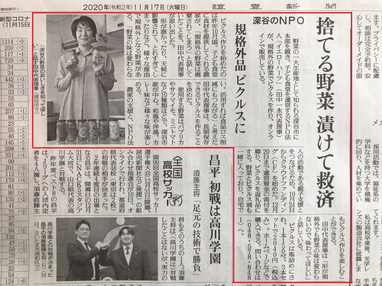本日11月17日の読売新聞埼玉版に掲載いただきました。
