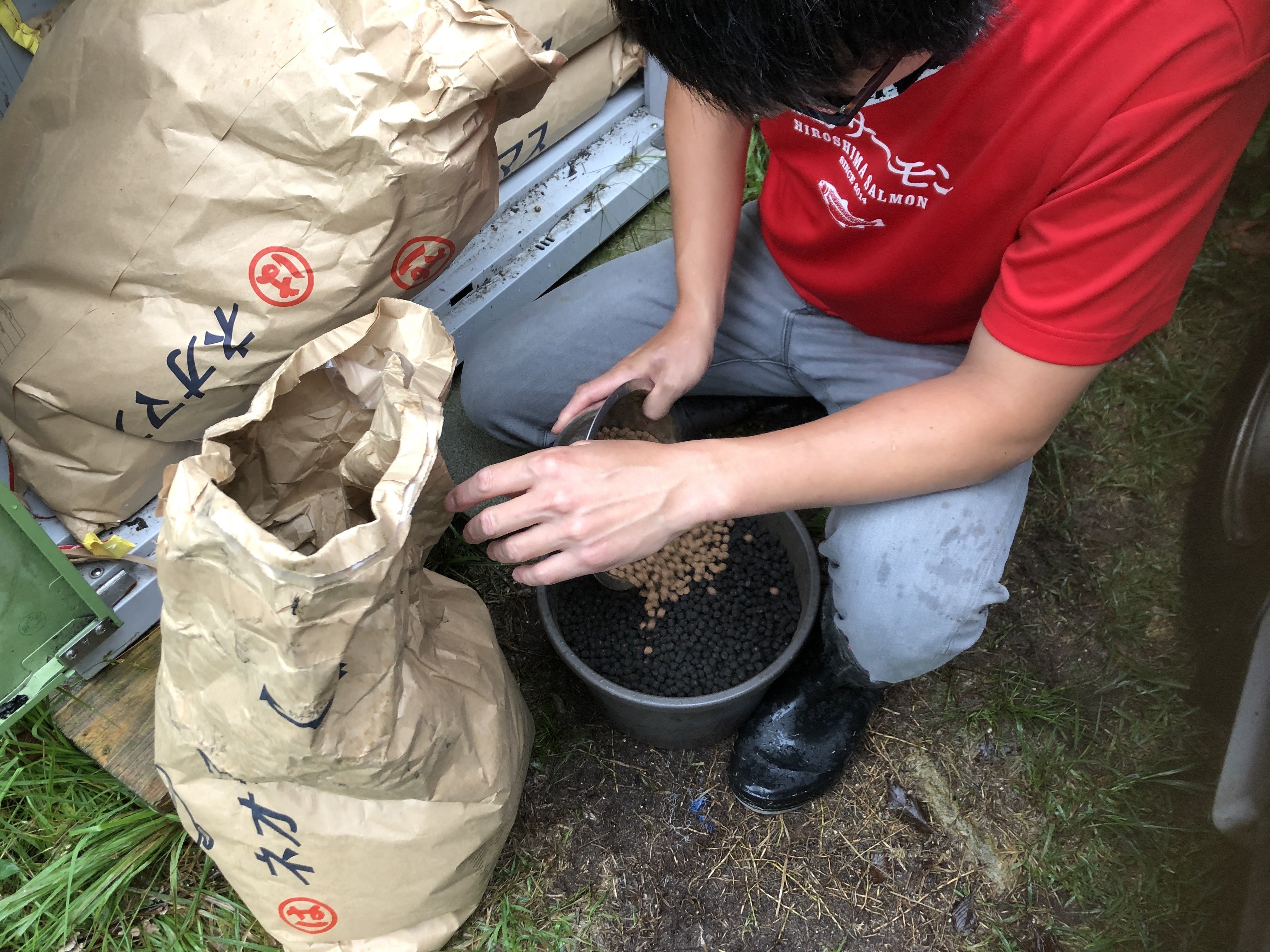 特に広島サーモンに与える餌は、当養魚場オリジナルの特注品を使い、年々改良を重ねております。身の赤みは一層強くなり、脂も過不足なく乗ります。そのため、広島サーモンは年数を重ねるごとに美味しさを増すのです。