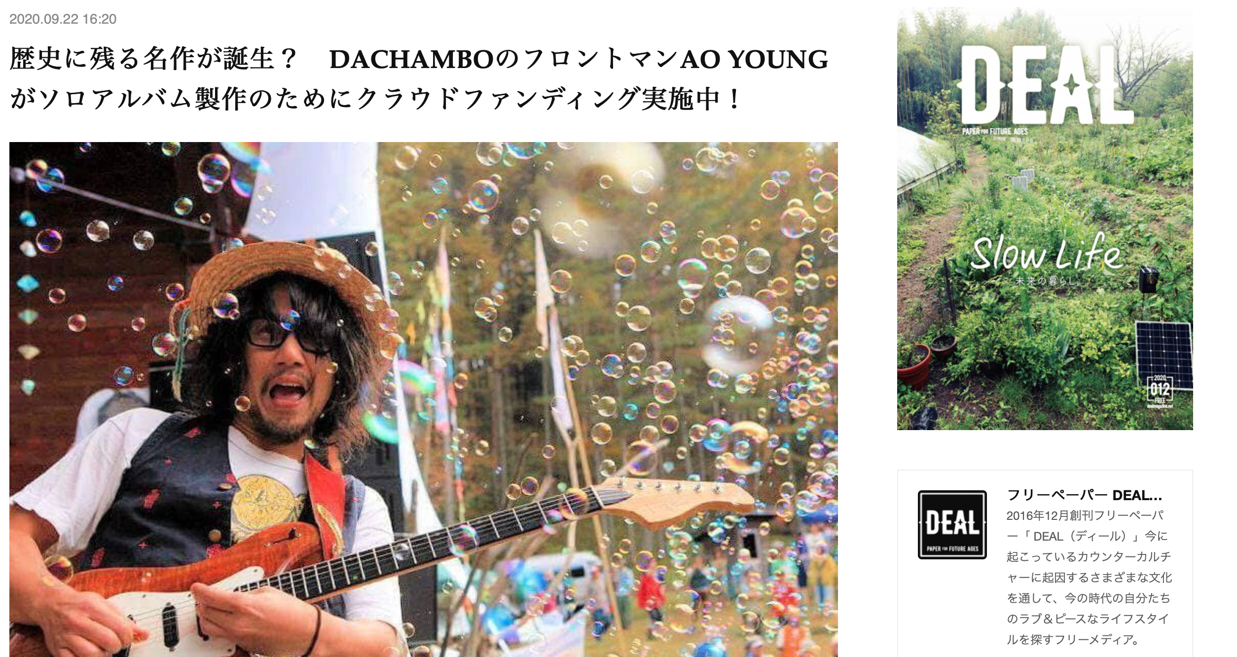 カウンターカルチャーに起因するさまざまな文化を通して、今の時代の自分たちのラブ&ピースなライフスタイルを探すフリーメディア「DEAL」サイト内にて、今回のクラウドファンディングを紹介していただきました!菊地隊長いつも感謝です!!https://www.dealmagazine.net/posts/10390321?fbclid=IwAR1CpoKmNzey5MC0cNspyifnp29sss7CzKNVwhXzU1DddqsbwaecJIVXDYo