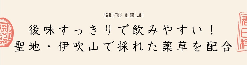 ぎふコーラは、みなさんの抱く薬草のイメージをガラッと変えてくれるはずです。薬草が後味のすっきり感を作り出し、スパイスと調合することでバランスが取れ、大人も子供も飲みやすいコーラに仕上がりました。炭酸はもちろんのこと、牛乳で割ったり、ウィスキーやワイン、ジンなどで割るのも相性抜群です。