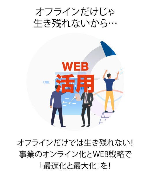 オンライン事業を取り入れるには、まず企業のインフラをデジタル化する必要があります。古いままでは生き残ることができません。キャッシュレス化、リモート化、ウェブ活用など…デジタル化するための課題は山積みで、何から手をつけていいのか分からない経営者様も多いと思います。