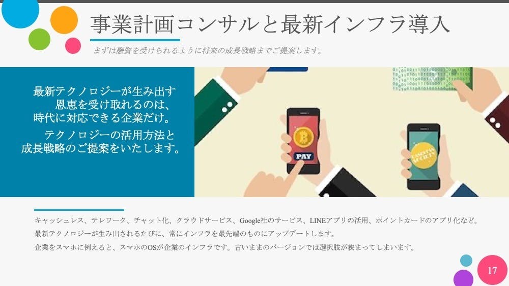 (3)「最新インフラ×WEB活用×他社と共存」の3拍子が揃えば、中長期的に発展が見込まれる事業計画書が作成できるから。
