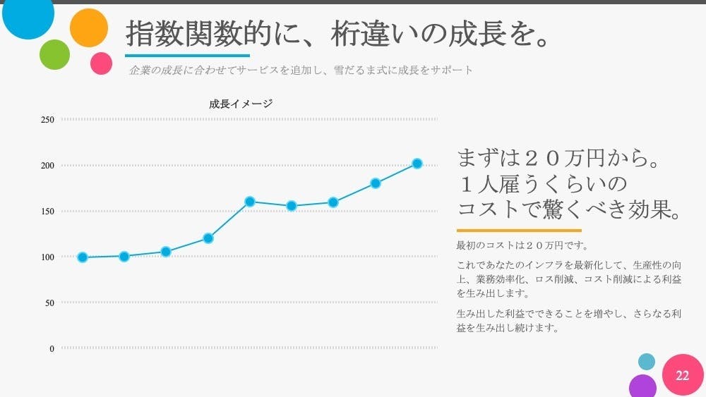 雪だるま式に、桁違いの成長をもたらすことをお約束します。