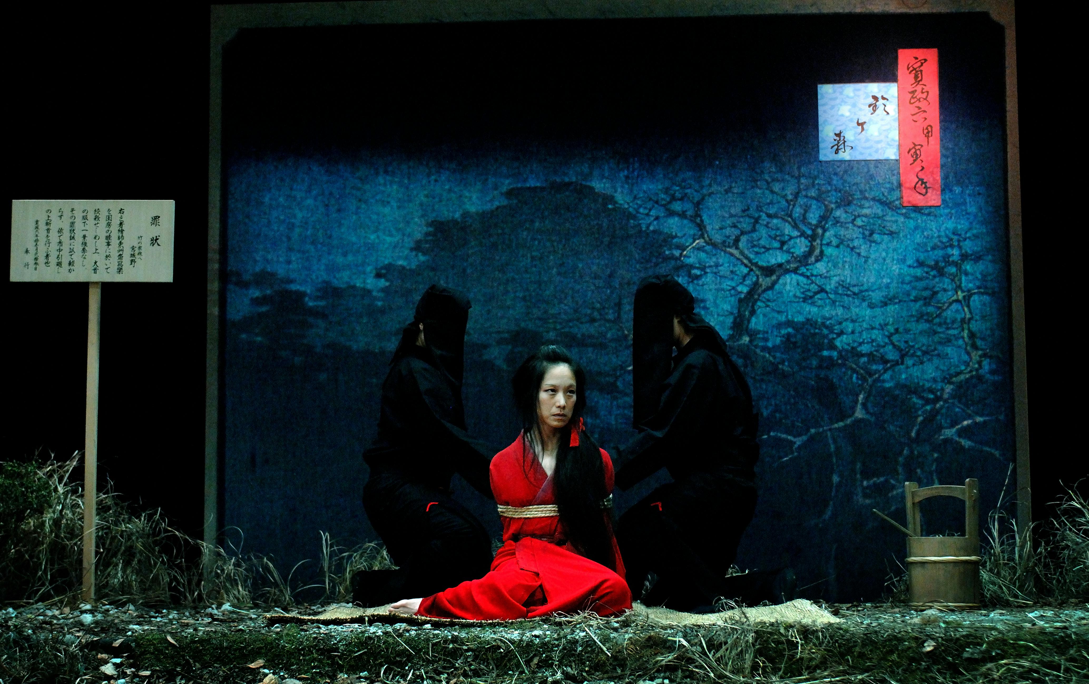 特に印象的だったのが、舞台セット。背景の歌川広重の名所江戸百景風の名所絵は幕末に刊行されたものであり、実際には、この映画の写楽の時代には刊行されたものではないものの(舞台セットのものは、画題も変わり、改印も消されていますが)あえて哀愁感のある広重の名所絵を使用することで、宮城野の哀愁漂う感じと絶妙にマッチしていて、非常にしっくりきました。