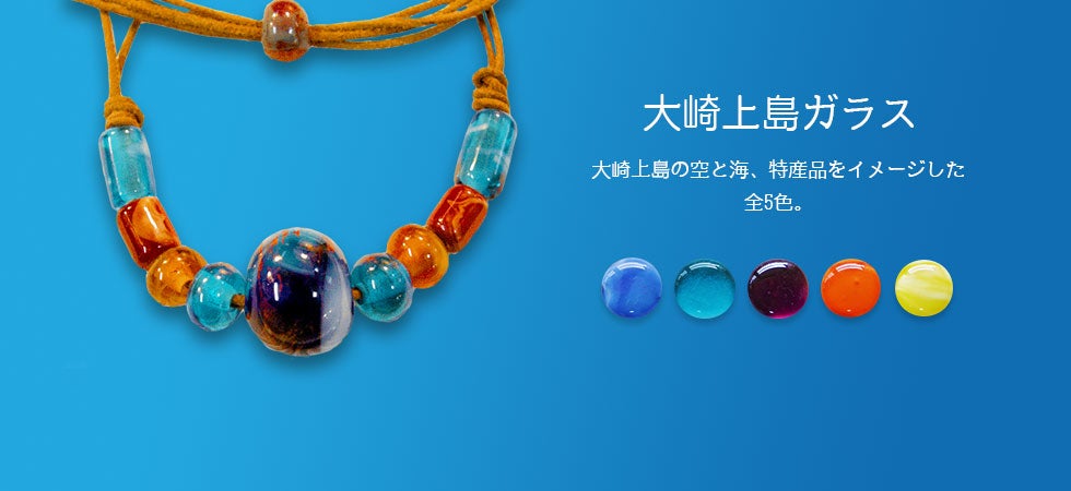 移住して4年、大崎上島の良さを感じている所、ガラスアクセサリーの工房、お店を開業する事となり、大崎上島の良さを島に来られた皆さんに持ち帰ってもらいたい!と、大崎上島イメージガラス(海、空、ブルーベリー、などの色をガラスで表現したもの)を制作し、ガラス工房、ホテル、観光案内所などで販売させて頂いています。