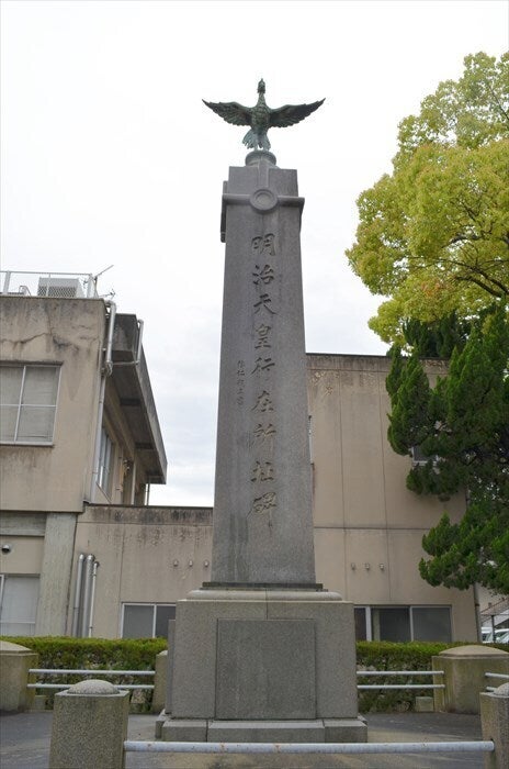 境内の一角には「明治天皇行在所碑」と言う立派な石碑が立っています。明治の初め、明治天皇がこの地に視察に訪れたことを顕彰するために、大正10年に市民が協力して建てたものです。