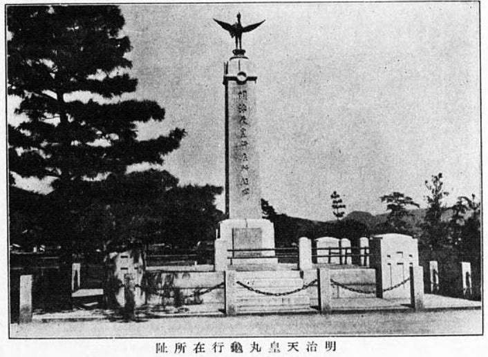 その後、自分は歴史(特に日本史)を学ぶことが好きになり、地元の大学に在学していた時に、丸亀の歴史を調べる機会があり、資料を読みあさっていた時に、丸亀護国神社は、西南戦争から太平洋戦争までの間お亡くなりになった方をお祀りしていること。そして明治5年には、明治天皇が西郷隆盛をお供にして、現在の丸亀護国神社の敷地にあった旧庁舎にお泊りになったことを知り、それを示す記念碑(明治天皇行在所址碑)も境内に設置されていることが分かり、丸亀護国神社の存在に強い関心を持ったのを覚えています。