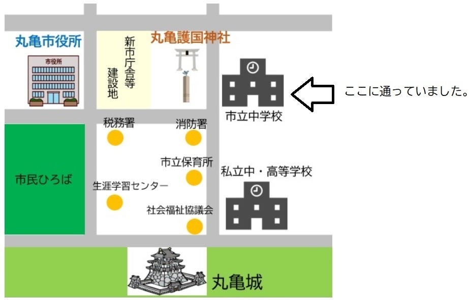 私は中学生の頃、丸亀護国神社の東隣にある中学校に通っていました。