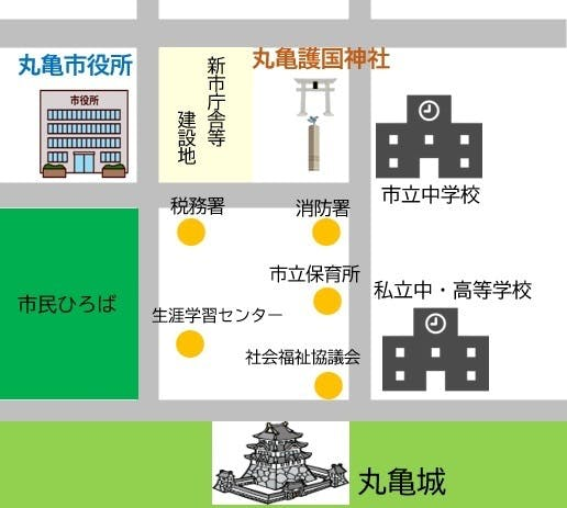 時を経て平成30年。丸亀護国神社の今後を左右するような話が出てきました。わがまち・丸亀市の新しい市庁舎の建設です。