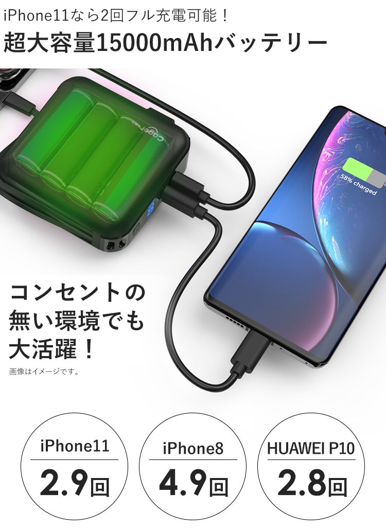 iPhone11なら、なんと2.9回のフル充電が可能。コンセントの無い環境でも、心強いですね!