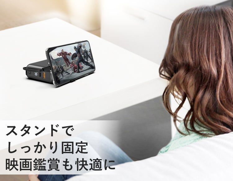 なんと、スマホスタンド機能まで搭載!充電しながらスマホで映画を観たり、料理中にレシピページをチェックする際などに重宝します。