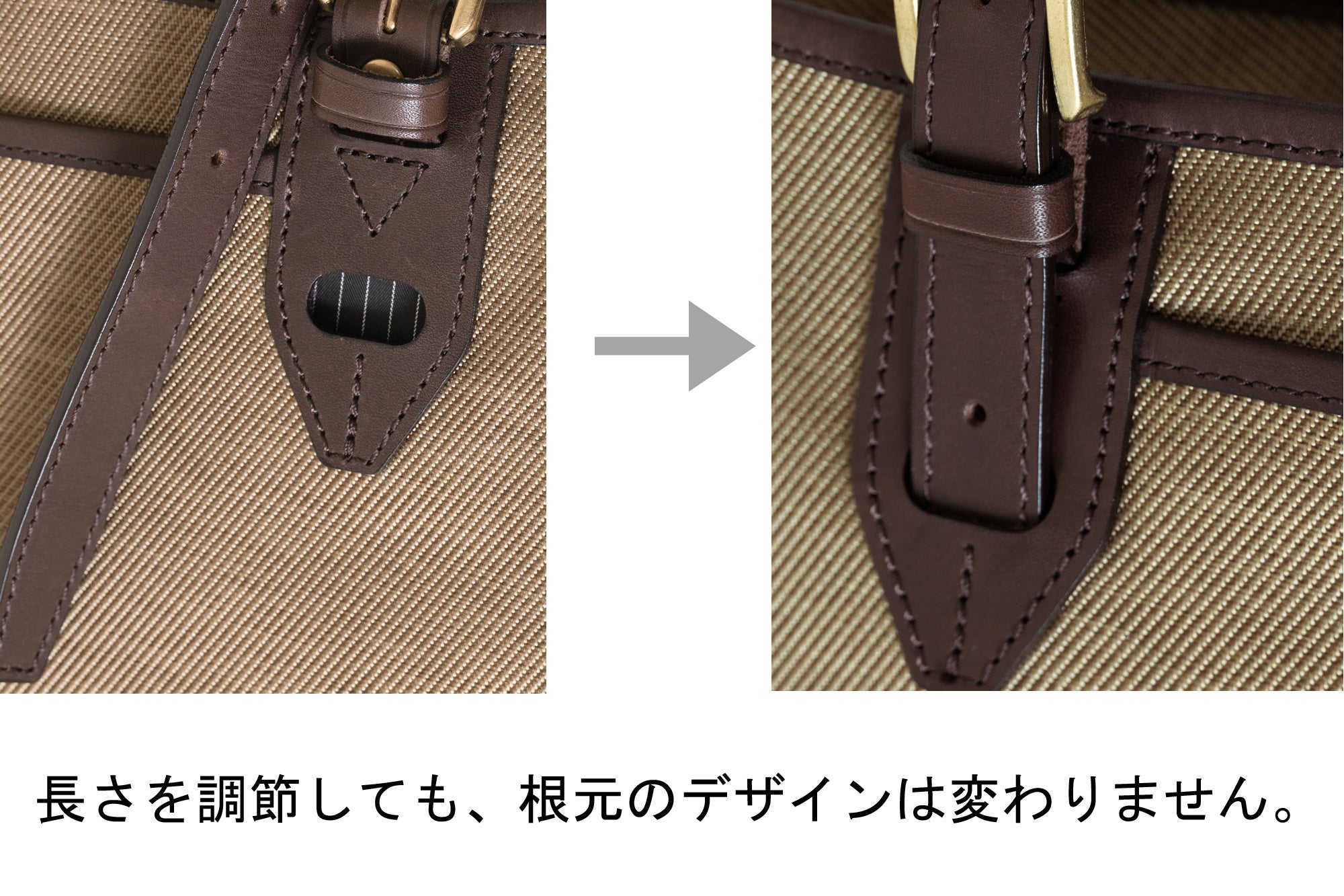 一般的なトートバッグで肩ひもを調節すると、余ったベルト部分が中途半端な長さで邪魔になったり、見た目が損なわれる事がありませんか?