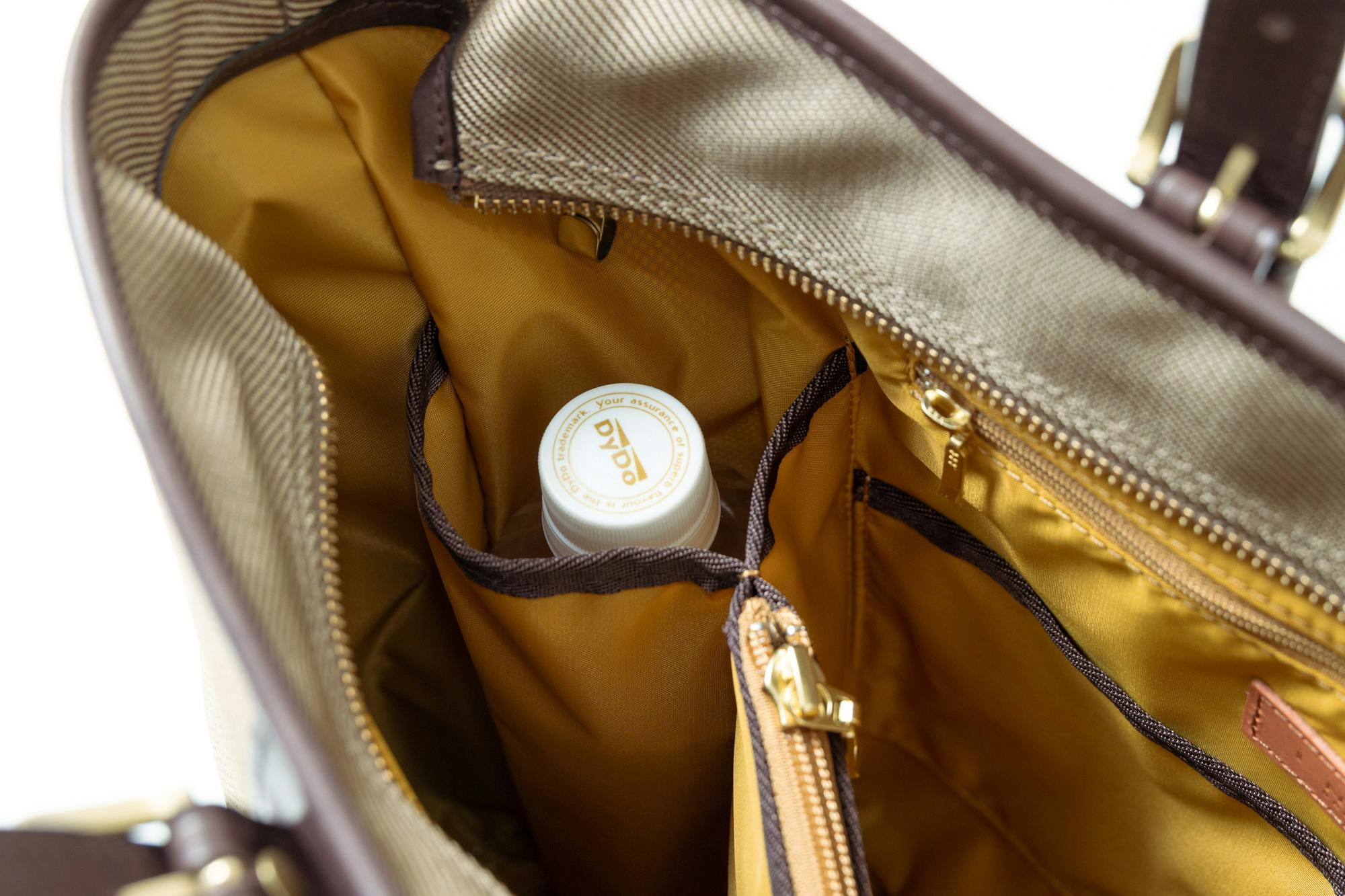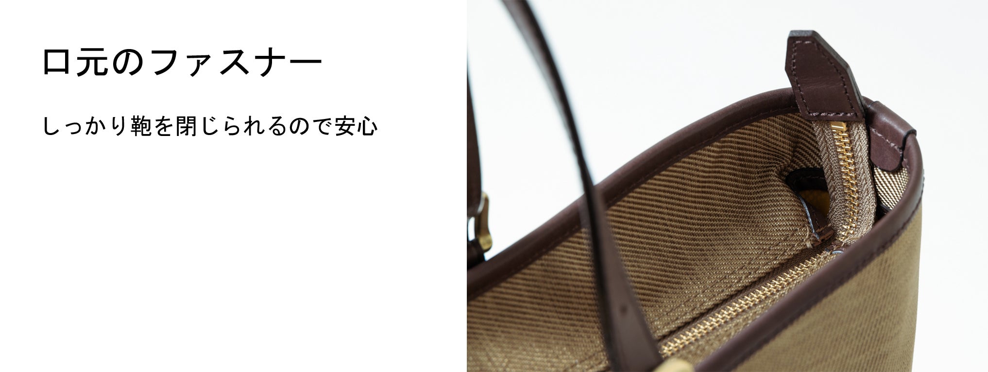 口元にはファスナーが付いているので、街中や電車の中でも安心して鞄を持ち歩けます。