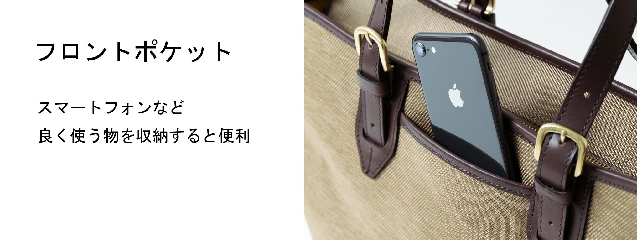 鞄の正面にはデザインのアクセントにもなっているフロントポケットを付けました。