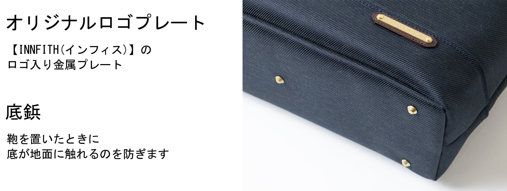 正面の右下にはブランド名である【INNFITH(インフィス)】のロゴ入り金属プレートを取り付けました。
