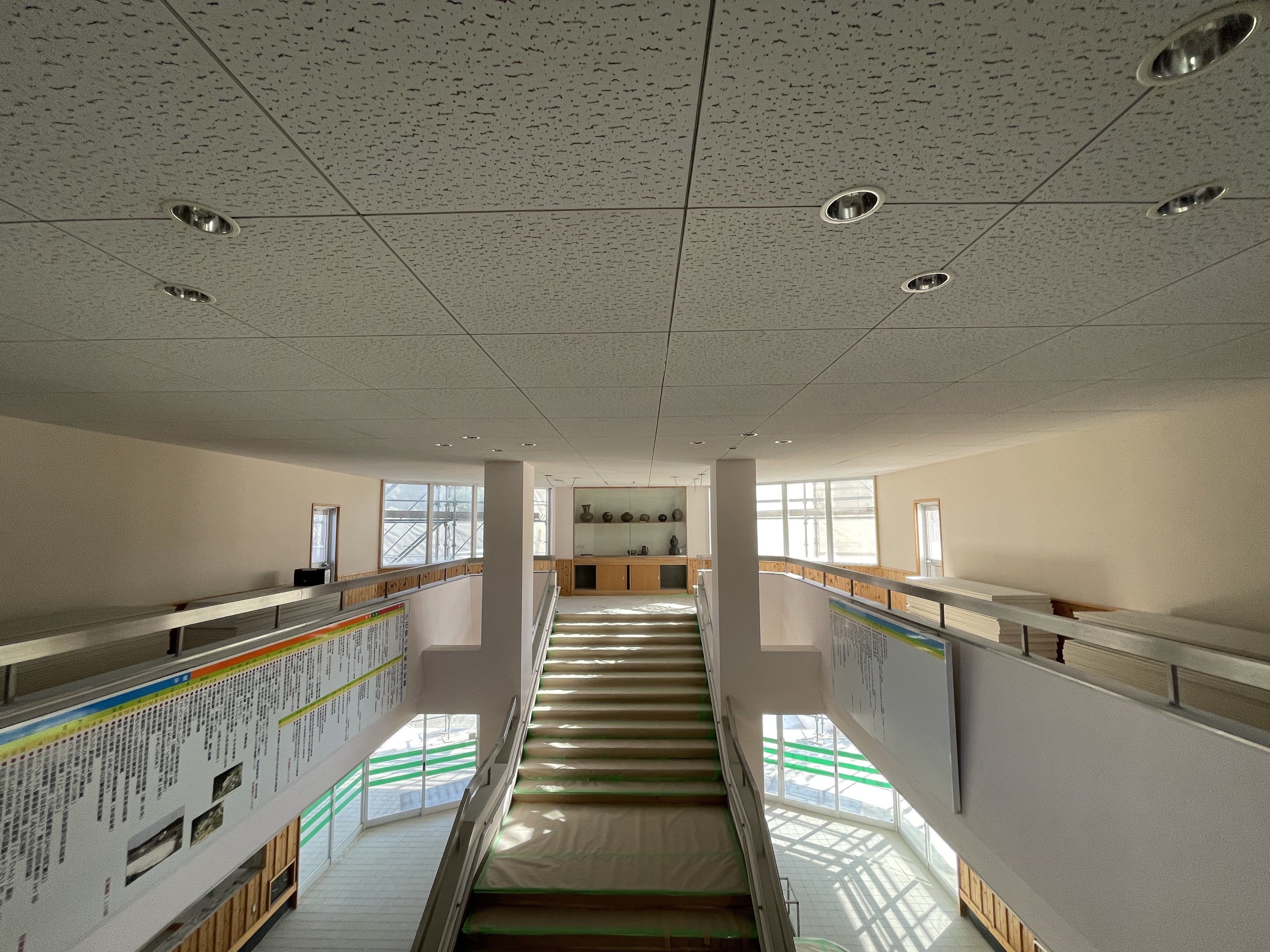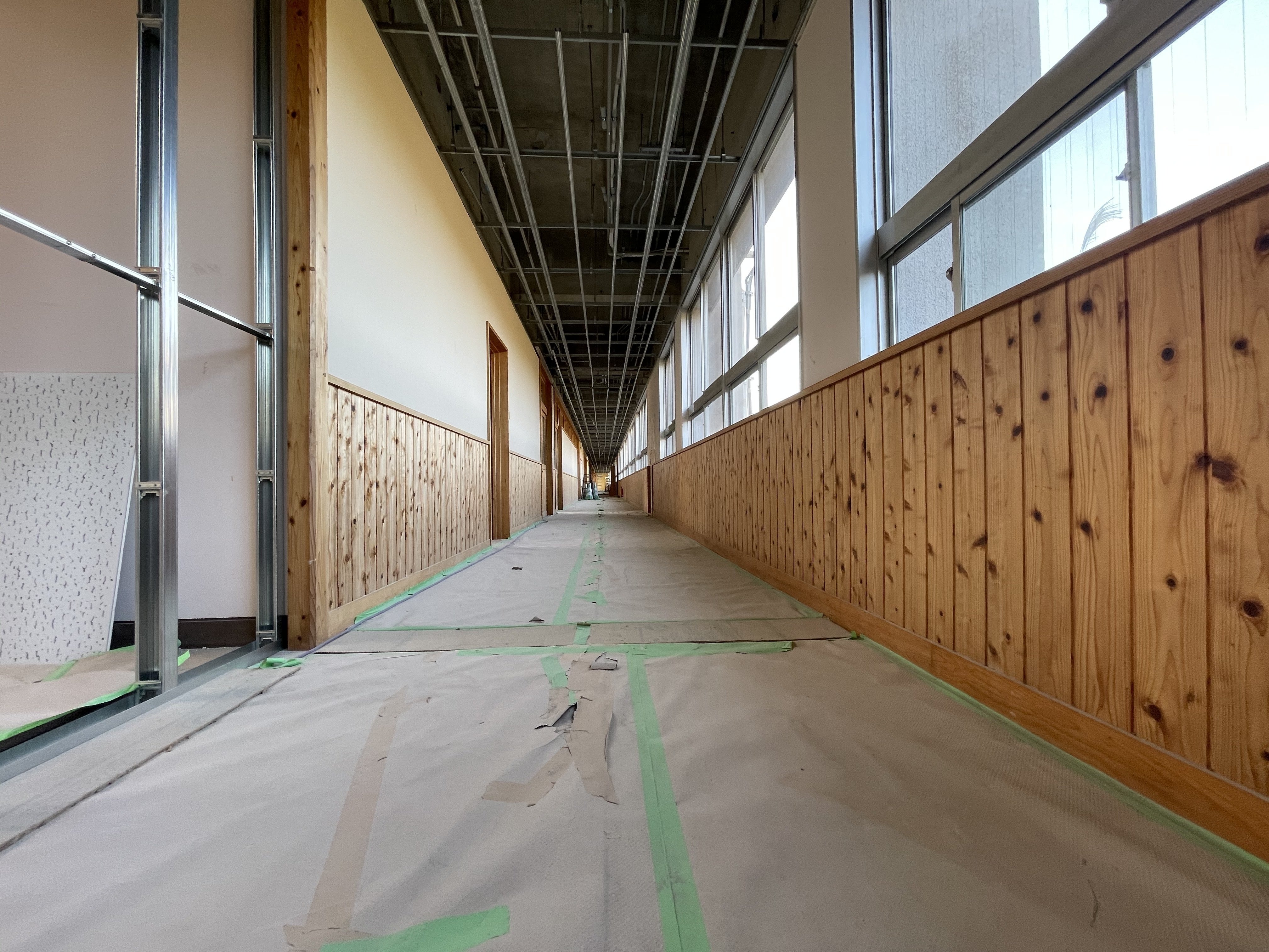 とーっても長い廊下ですね。私が小学生の頃に先生から「廊下は走ったらいけません」とよく注意されてましたが、開校後には廊下で50メートル走とか、思いっきり走ってみる企画も実施してみたいです!みなさん、ご興味ありますか??