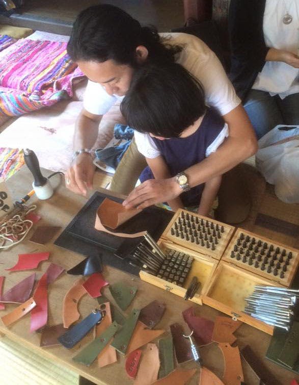 1、オリジナル革キーホルダー作り体験