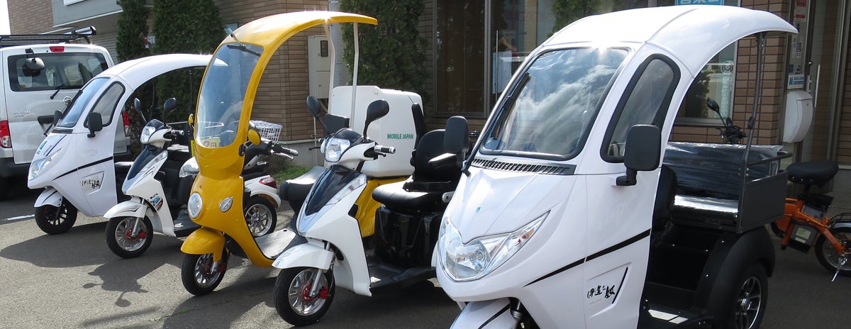 仙台のモービルジャパン株式会社と申します。当社は2014年(平成26年)7月に設立。東日本大震災の後、省力、省エネ、CO2排出削減が提唱されるなか、国産ではまだ非常に値段が高く、ほとんど普及しない電気ミニカー、電動トライクなどエコカーを開発・販売。どこよりも安く提供しています。設立してまだ6年目ですが、自動車など工業技術に詳しいベテラン技術者2人が、これからの日本のエコカー需要を見越して立ち上げました。