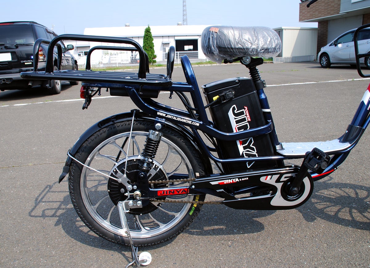 業務用で、大きく頑丈な荷台が付いていますが、下の写真のように荷台を外せば、通勤や通学にも使えるビークルにもなります。お好みのカゴなどをご自分で探してつけられますよ。