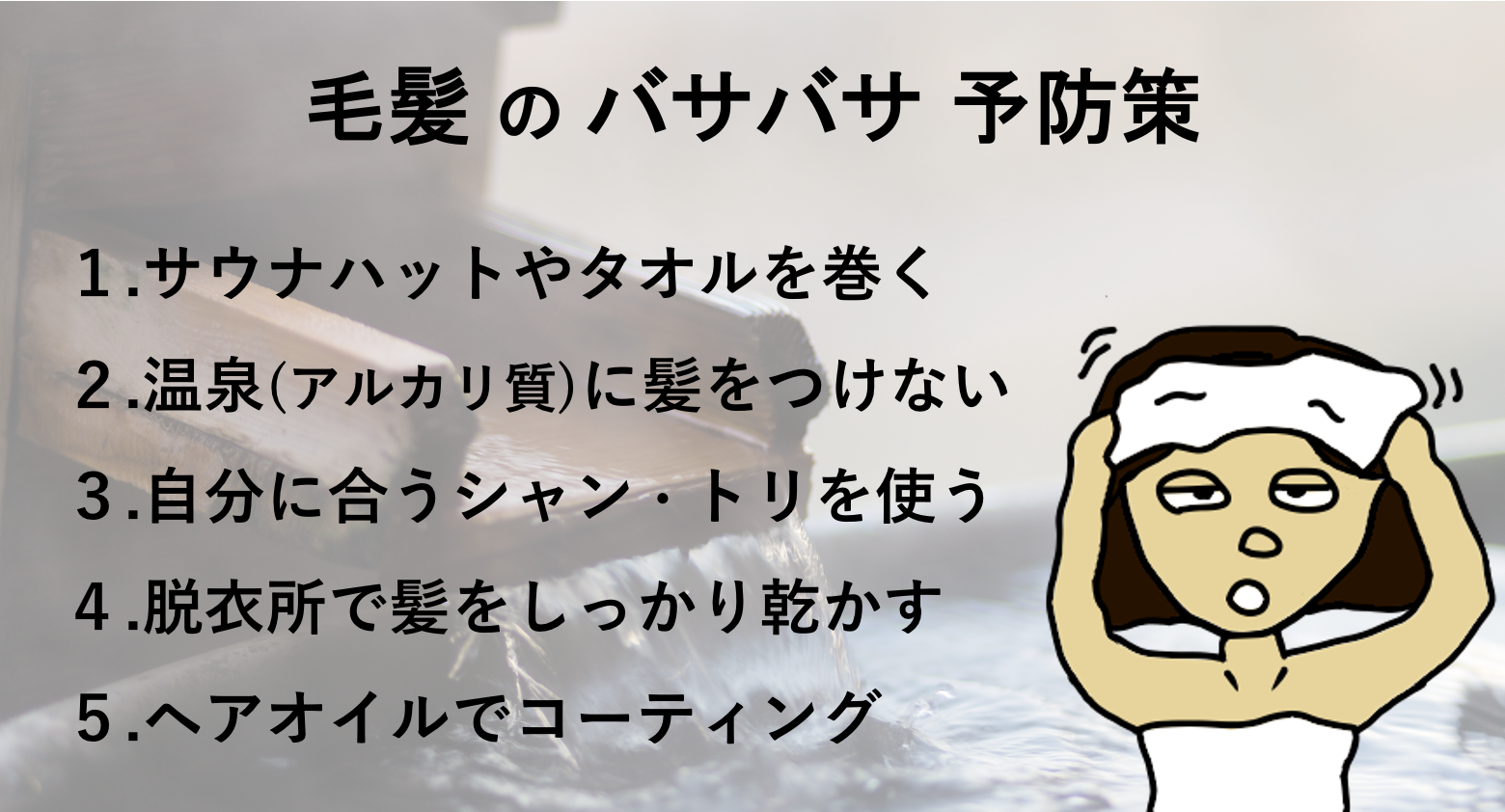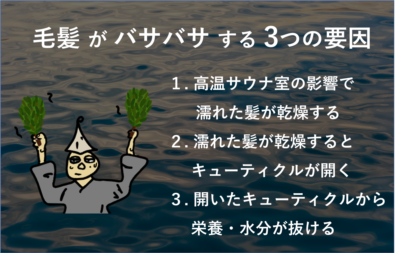 せっかく温浴施設でリフレッシュを求めてるのに、髪の傷みを気にして心からサウナを楽しめないのは、とても悲しいです。