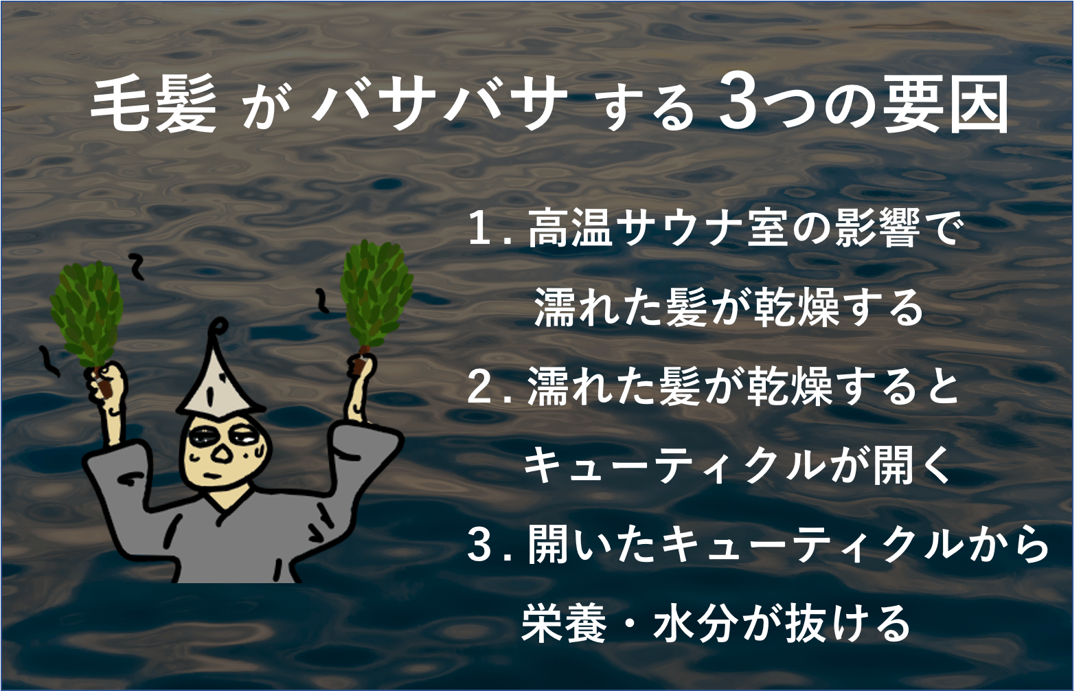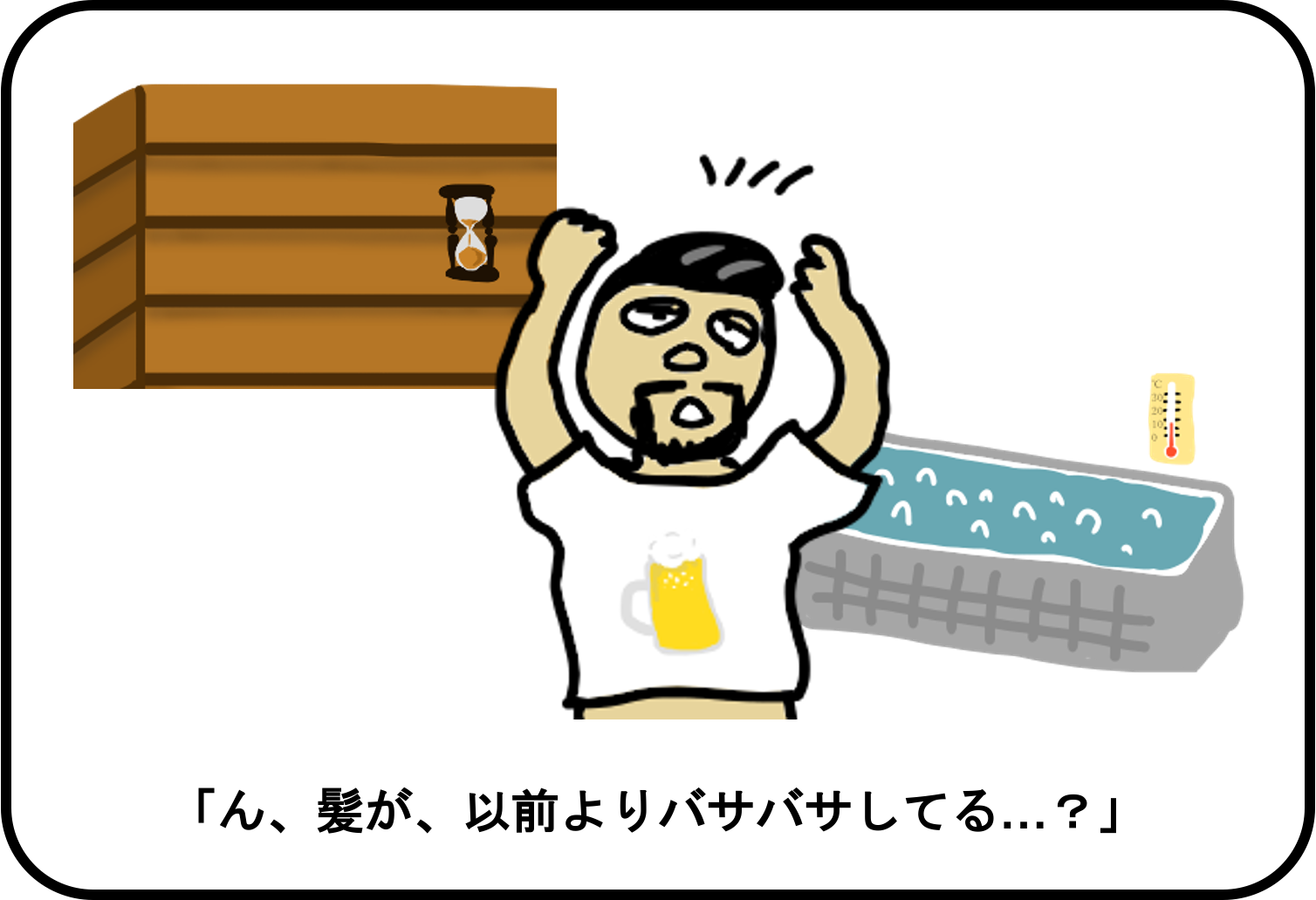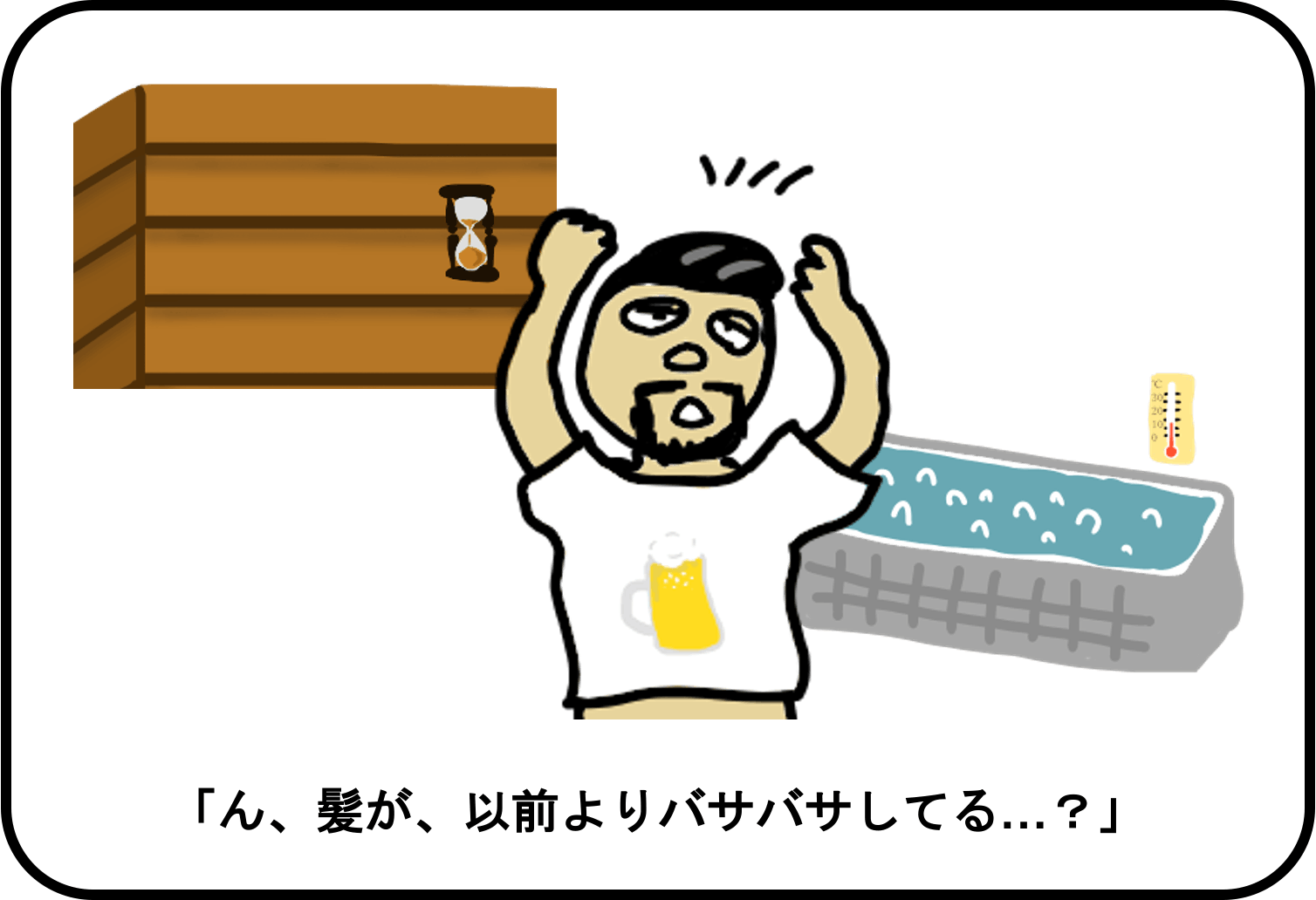 サウナ室はとても高温です。毛髪にとって過酷な環境のため、とても乾燥します。