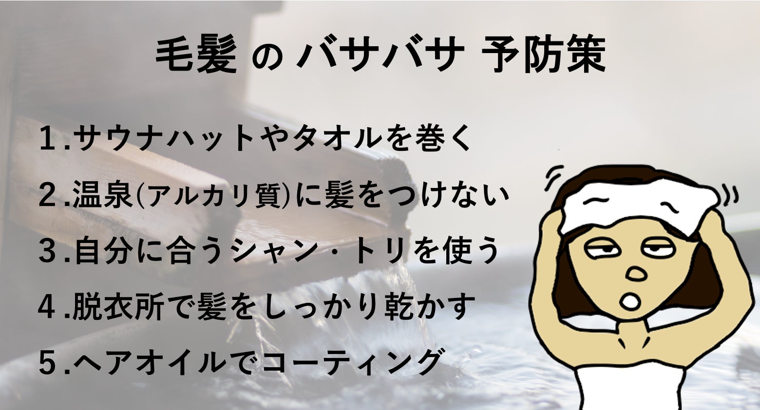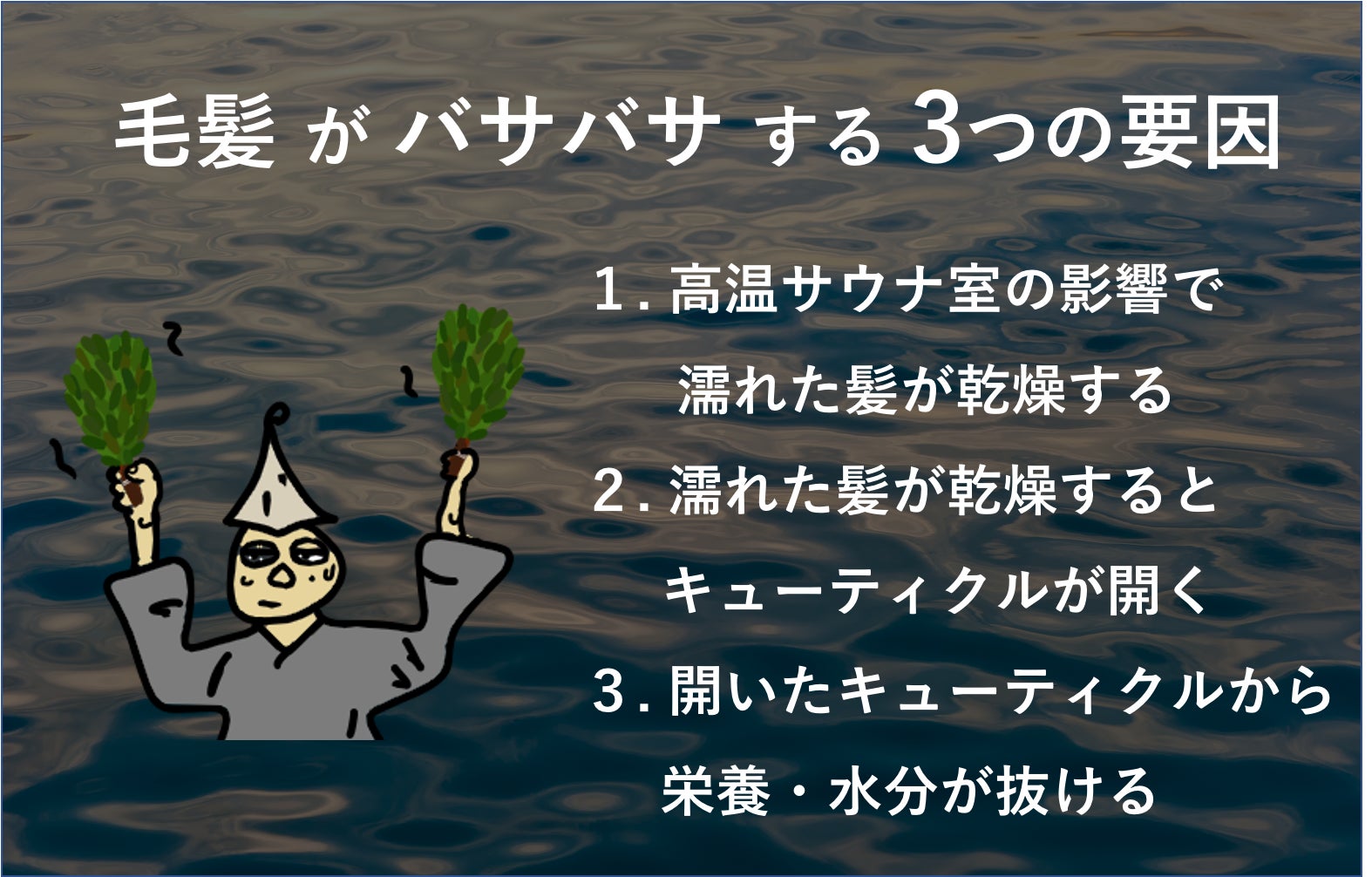 せっかく温浴施設でリフレッシュを求めてるのに、髪の傷みを気にして心からサウナを楽しめないのは、とても悲しいです。