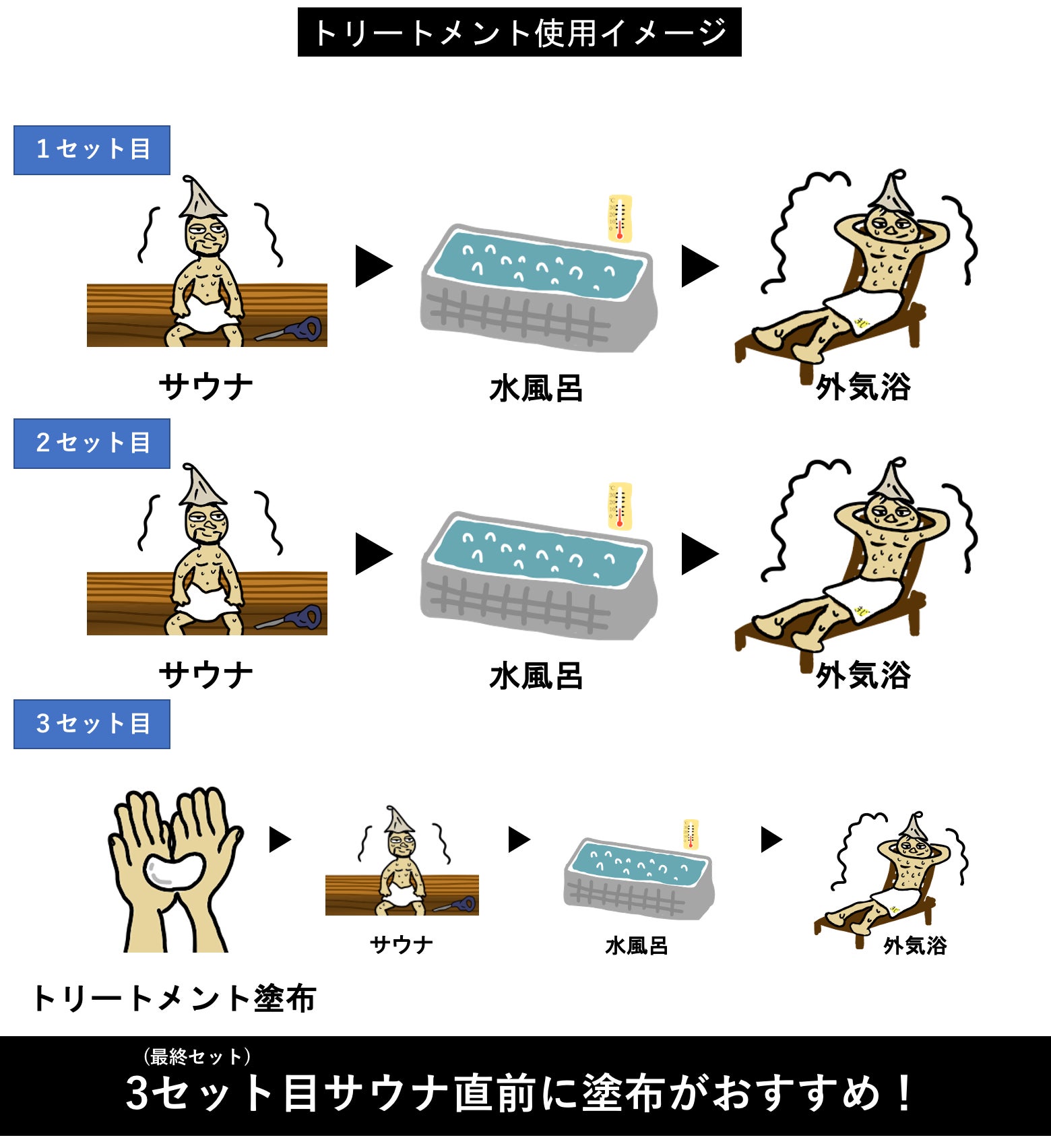 ・サウナ浴を繰り返しキューティクルを開かせてトリートメント浸透率をあげる